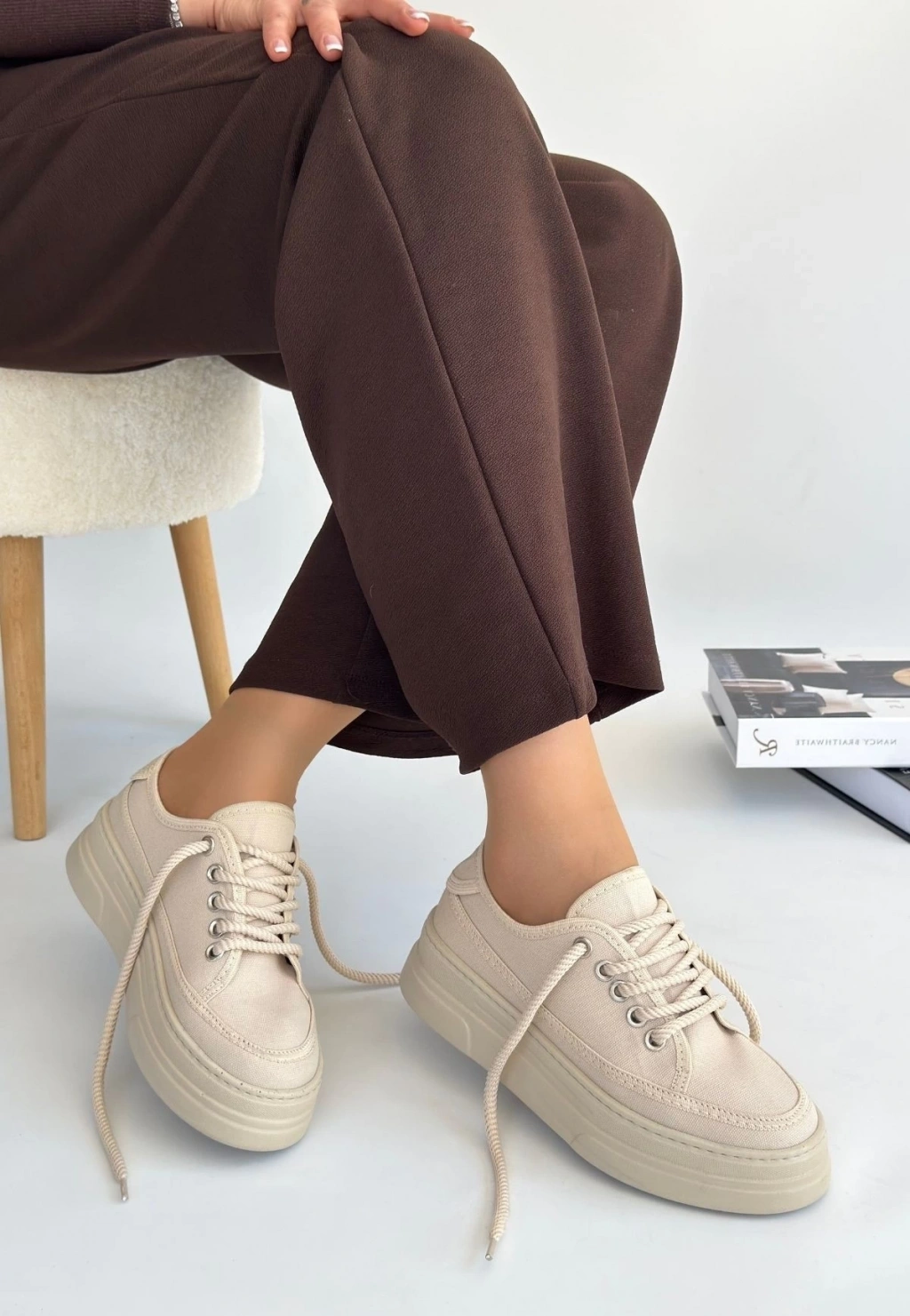 Carin Bej Keten Bağcıklı Spor Ayakkabı