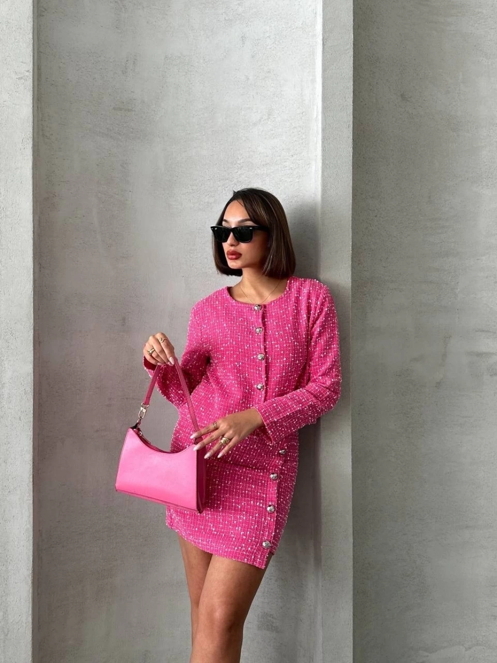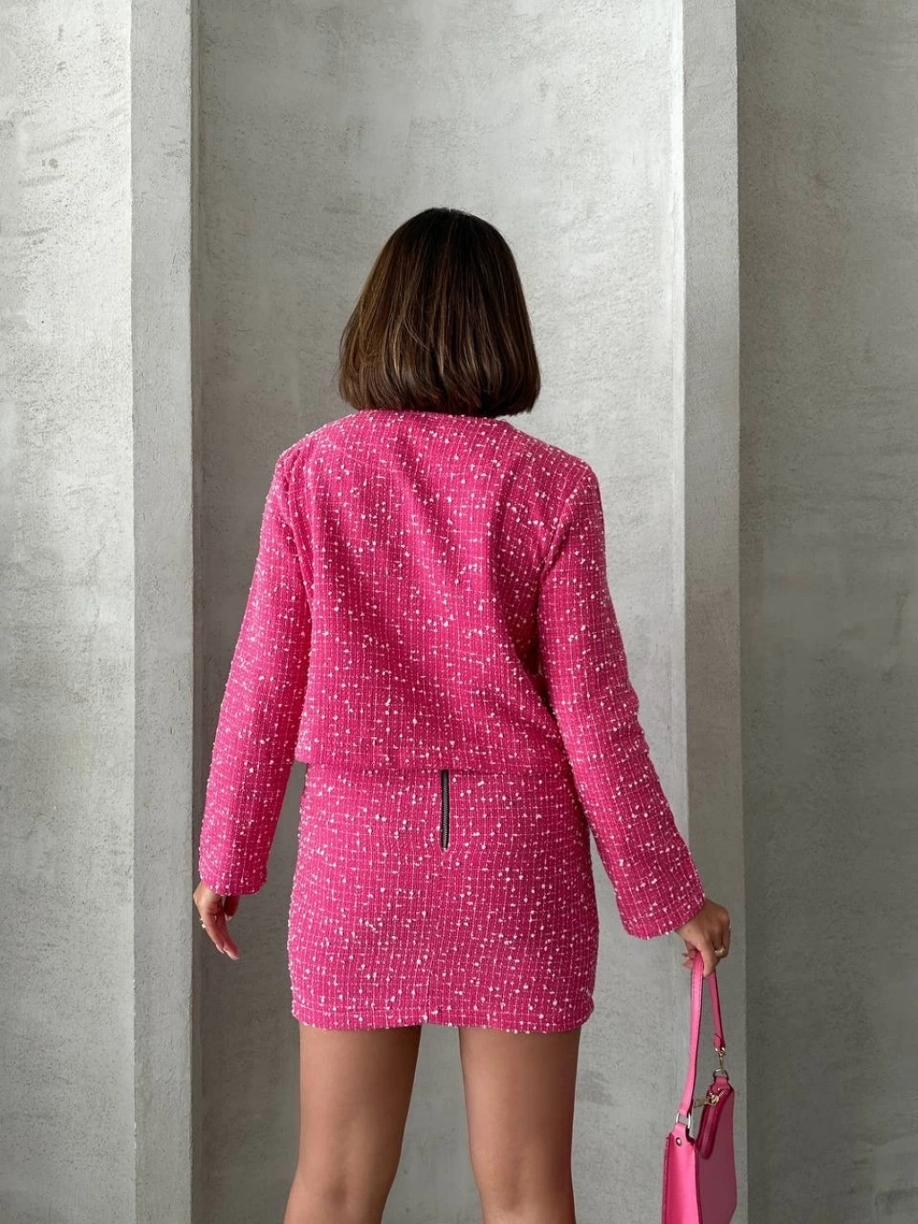 Ceketli etek takım chl kumaş fuşya h24443
