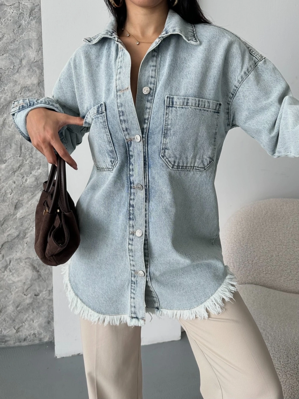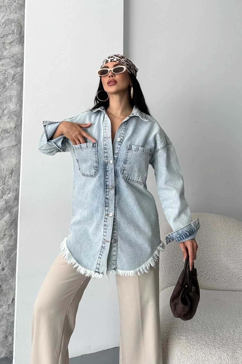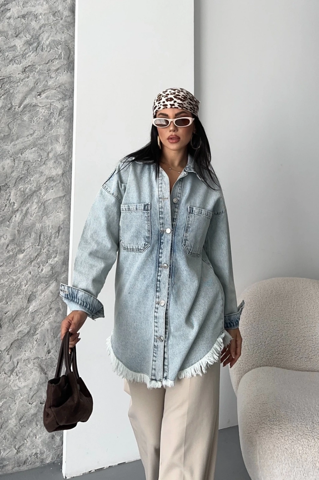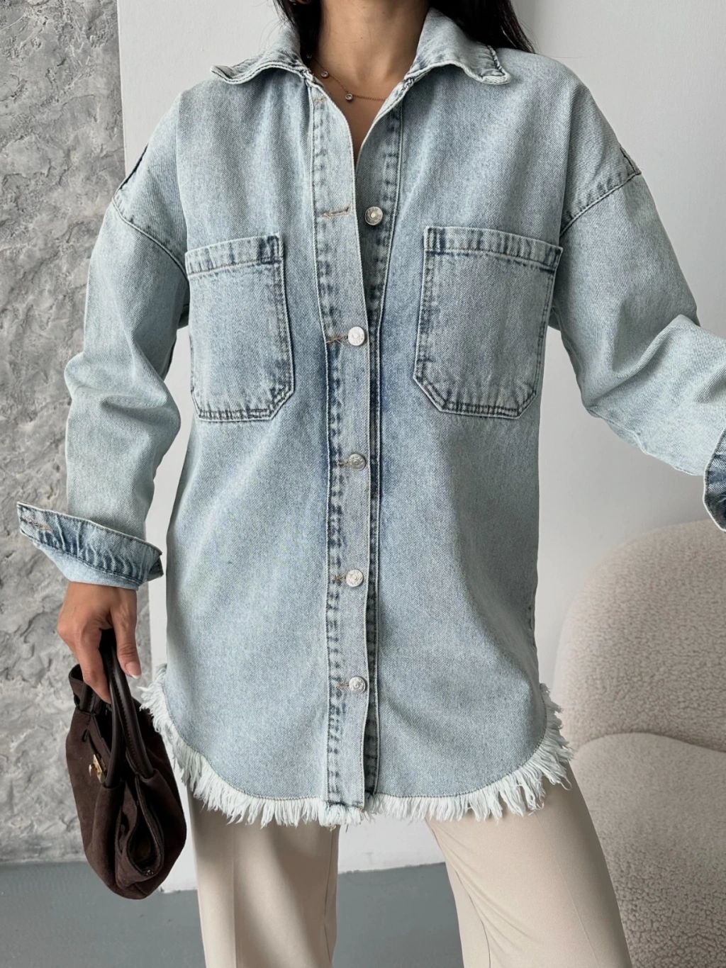Cepli püsküllü kar yıkama kot ceket mavi d2515