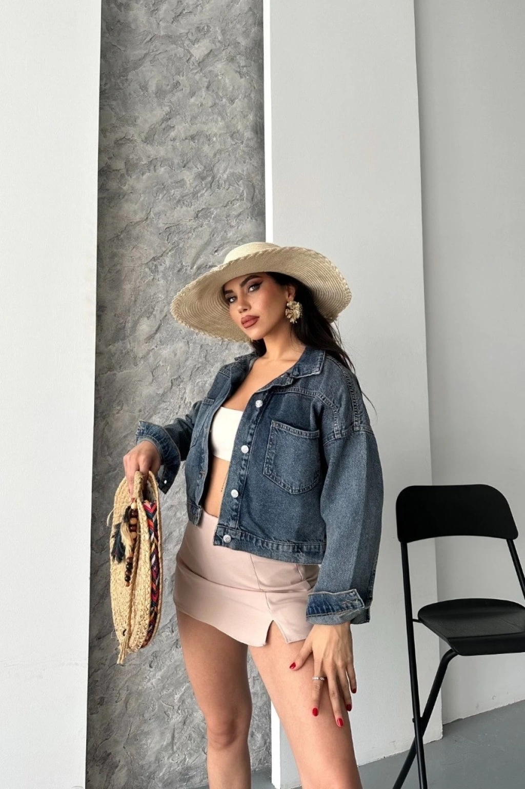 Çift cepli kol katlamalı kar yıkama crop kot ceket kahve tint d2000