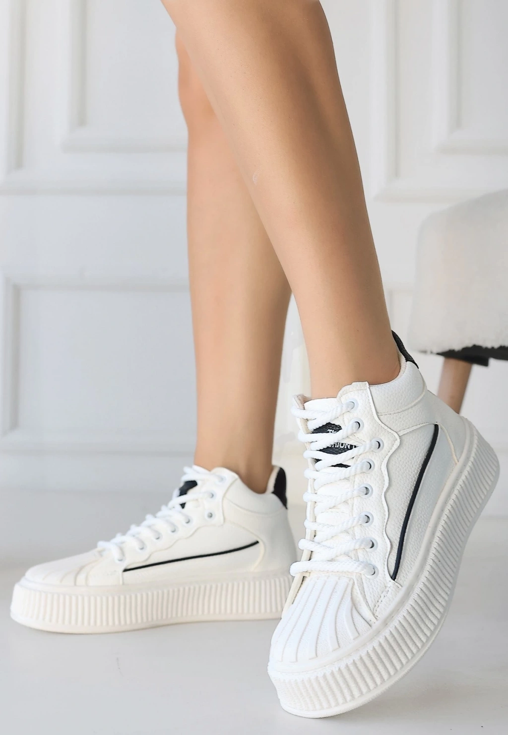 Estim Beyaz Cilt Siyah Detaylı Bağcıklı Spor Ayakkabı