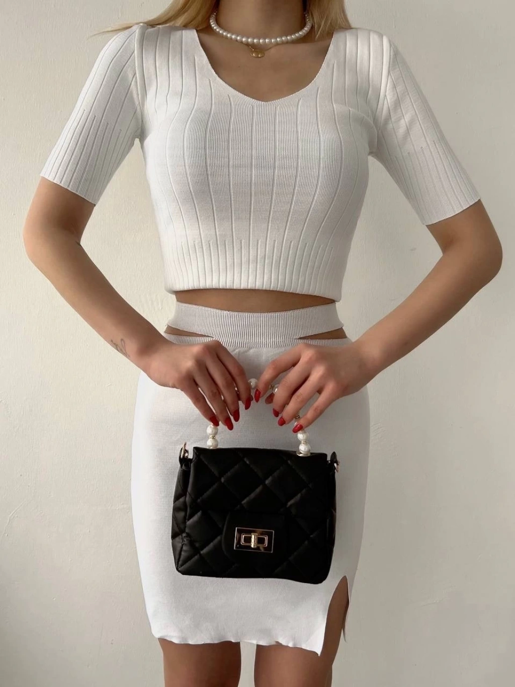 Etekli triko takım beyaz t23107