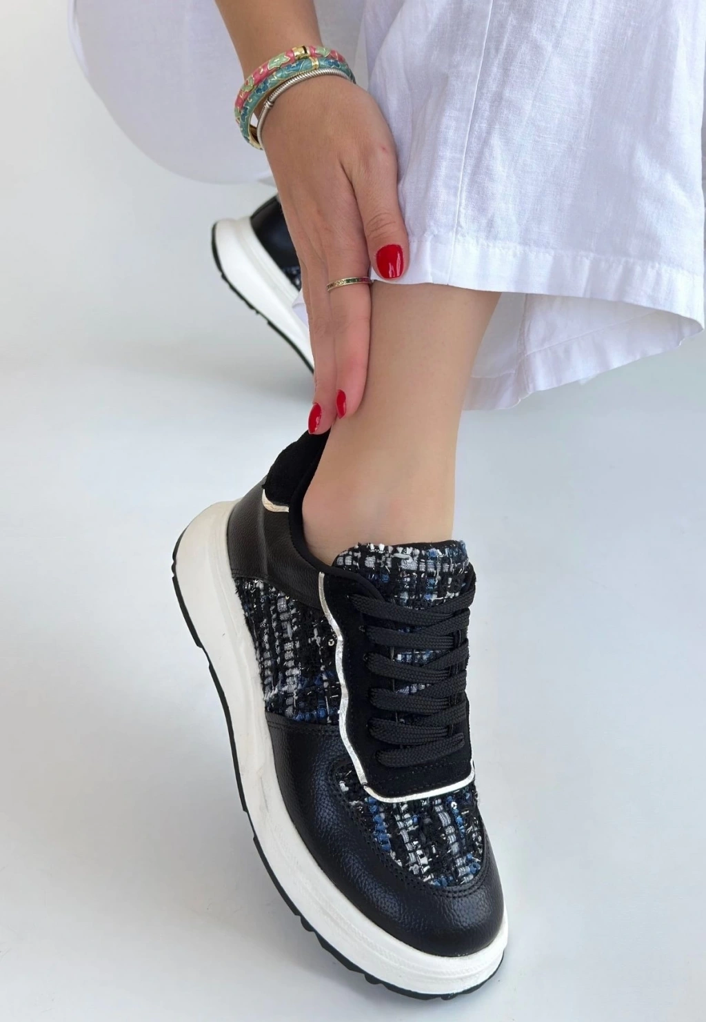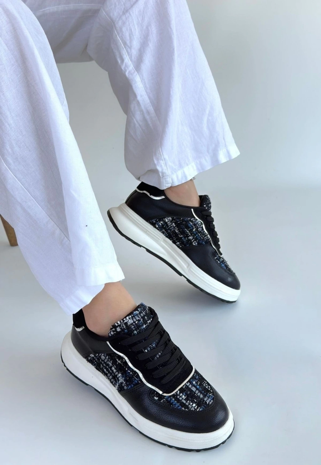 Hawer Siyah Cilt Bağcıklı Spor Ayakkabı