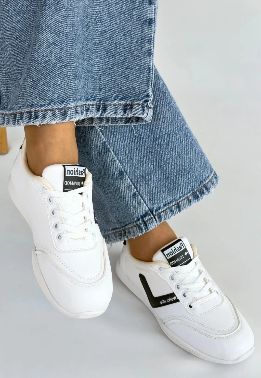 Jowen Beyaz Cilt Siyah Detaylı Bağcıklı Spor Ayakkabı