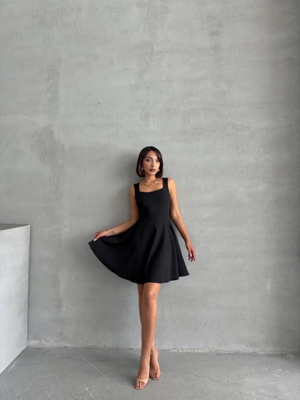 Kadın kare yaka kısa elbise s251188