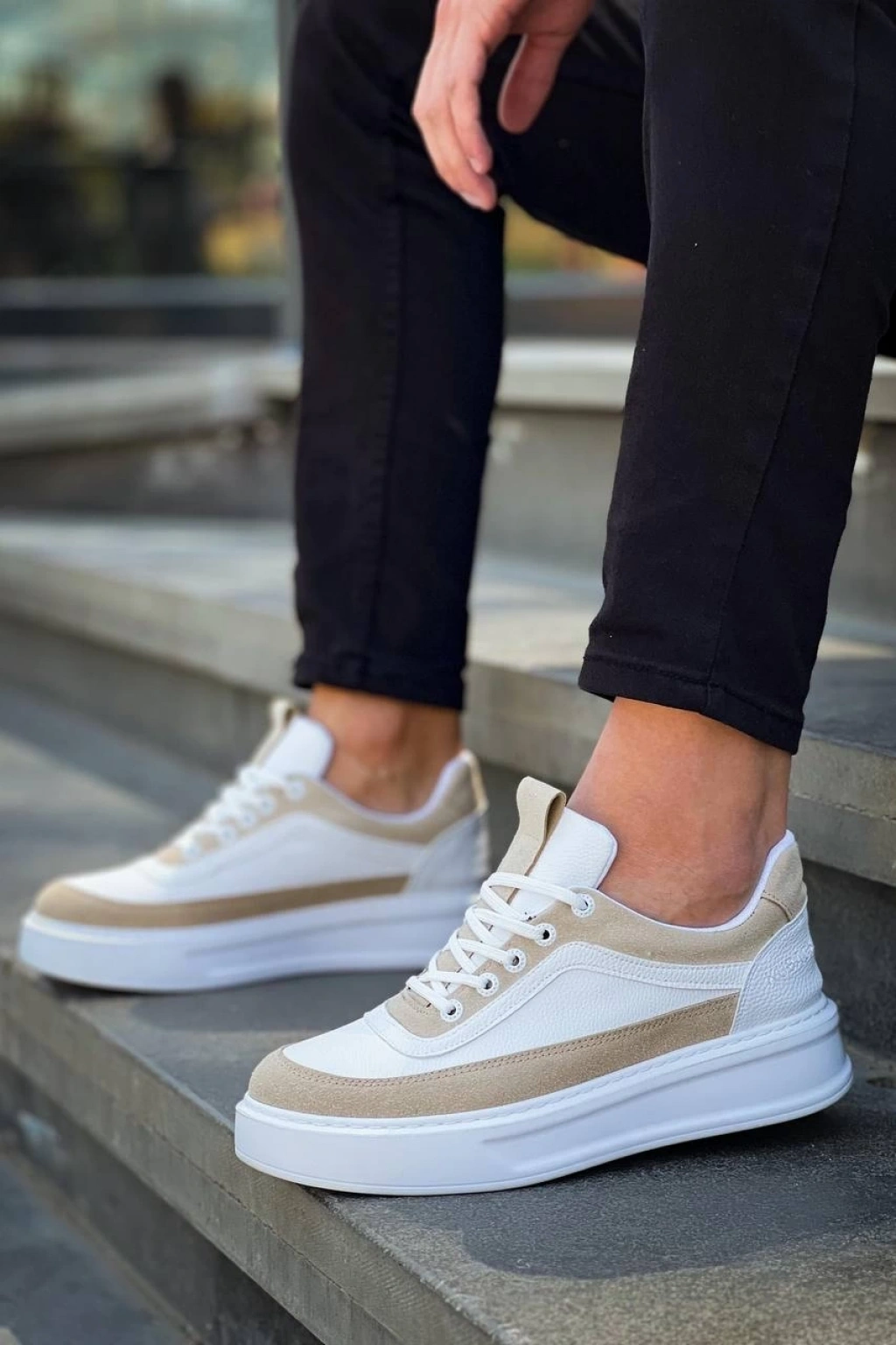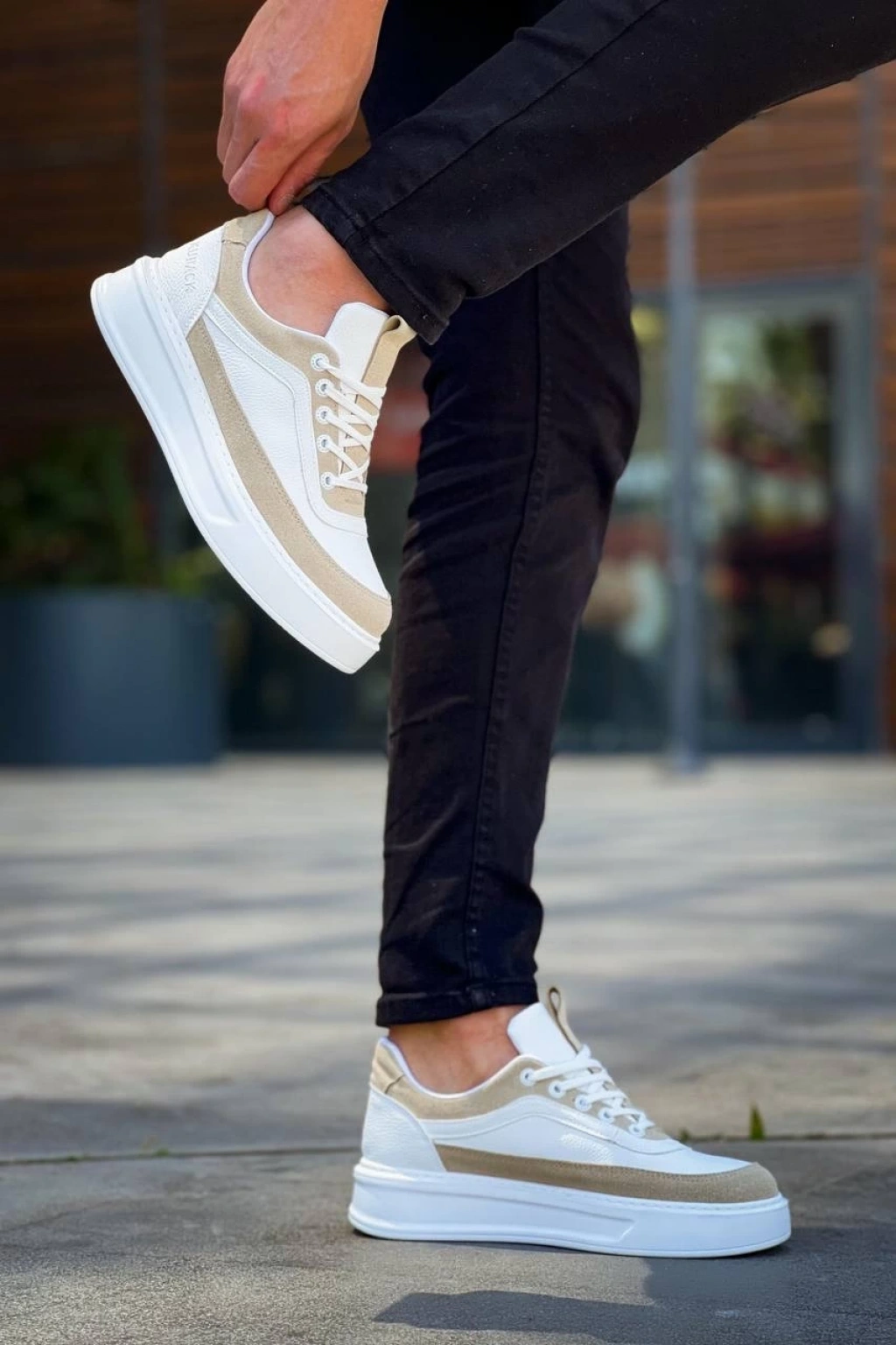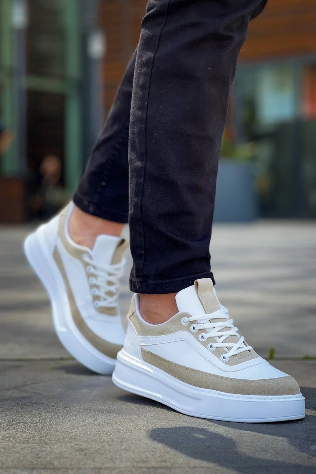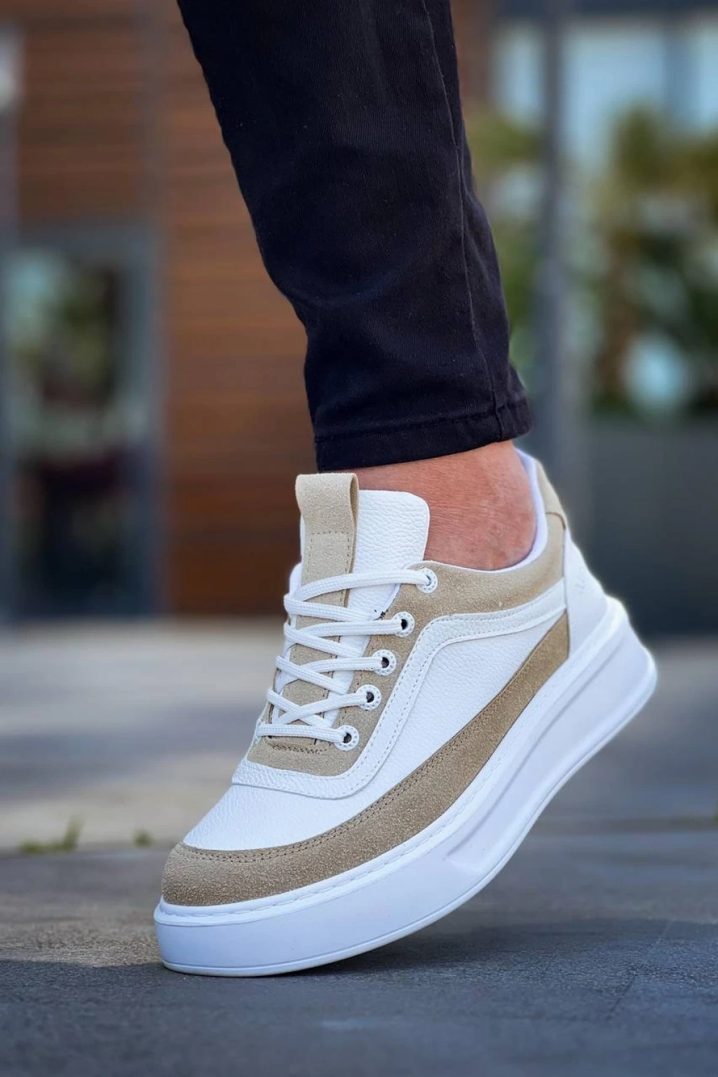 KB-006 Kuback Beyaz Cilt Bej Süet Yüksek Taban Bağcıklı Günlük Erkek Ayakkabı