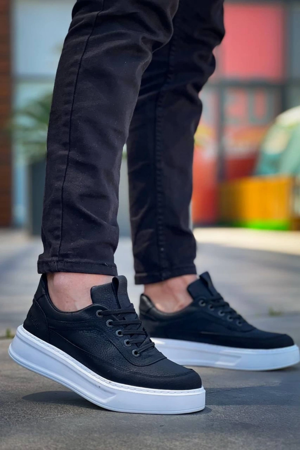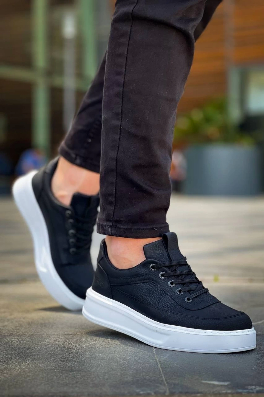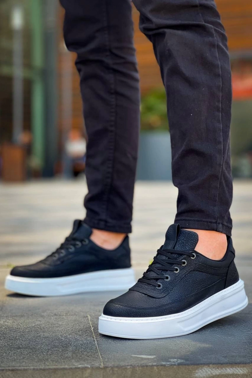 KB-006 Kuback Siyah Cilt Yüksek Taban Bağcıklı Günlük Erkek Ayakkabı