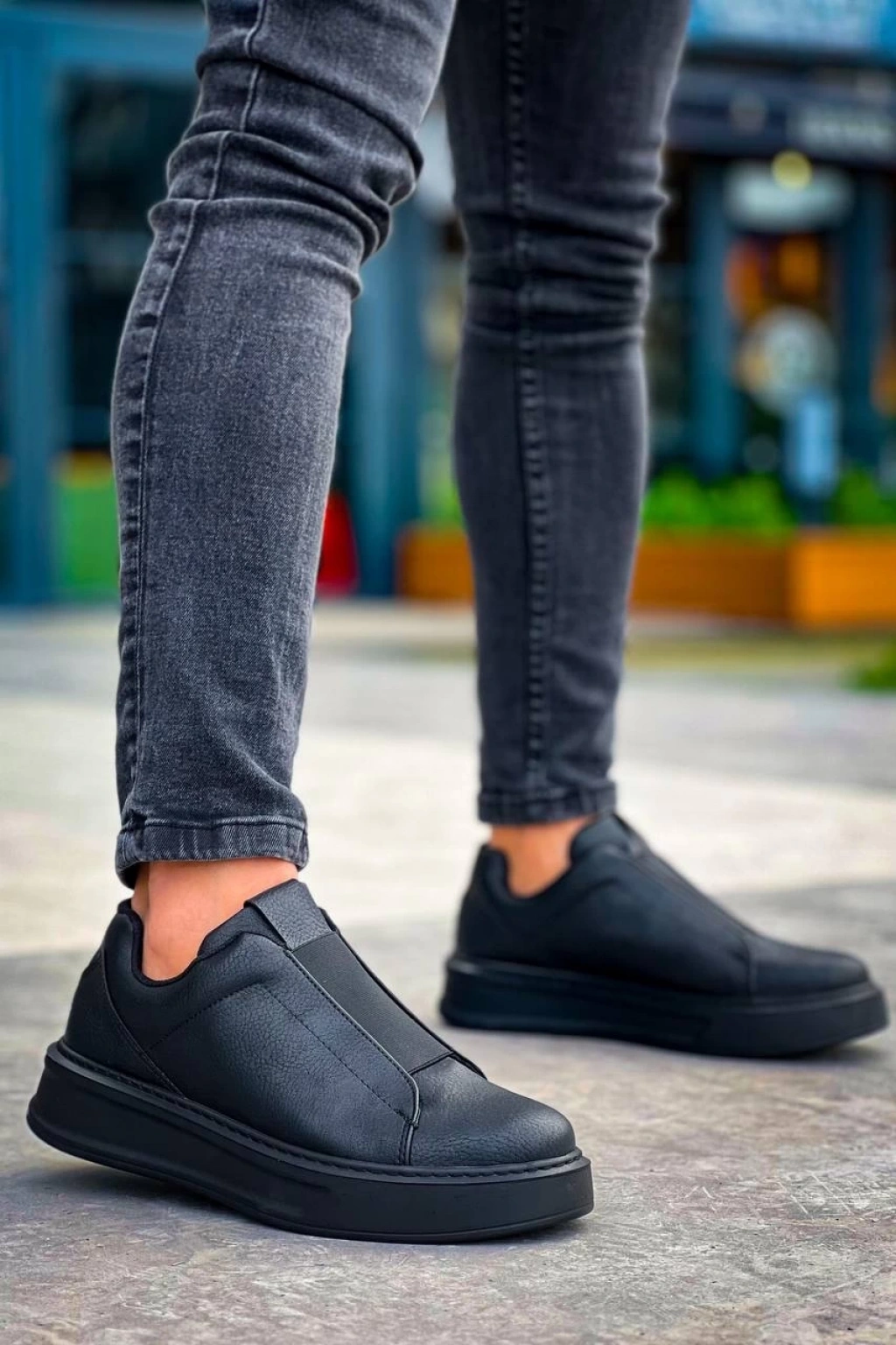 KB-007 Kuback Siyah Siyah Yüksek Taban Tek Bant Bağcıksız Günlük Erkek Ayakkabı