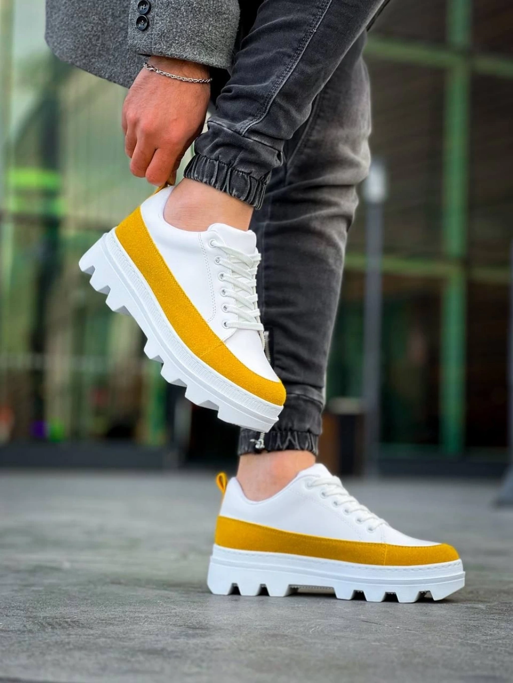 KB-056 Kuback Beyaz Sarı Detaylı Beyaz Yüksek Taban Günlük Spor Ayakkabı