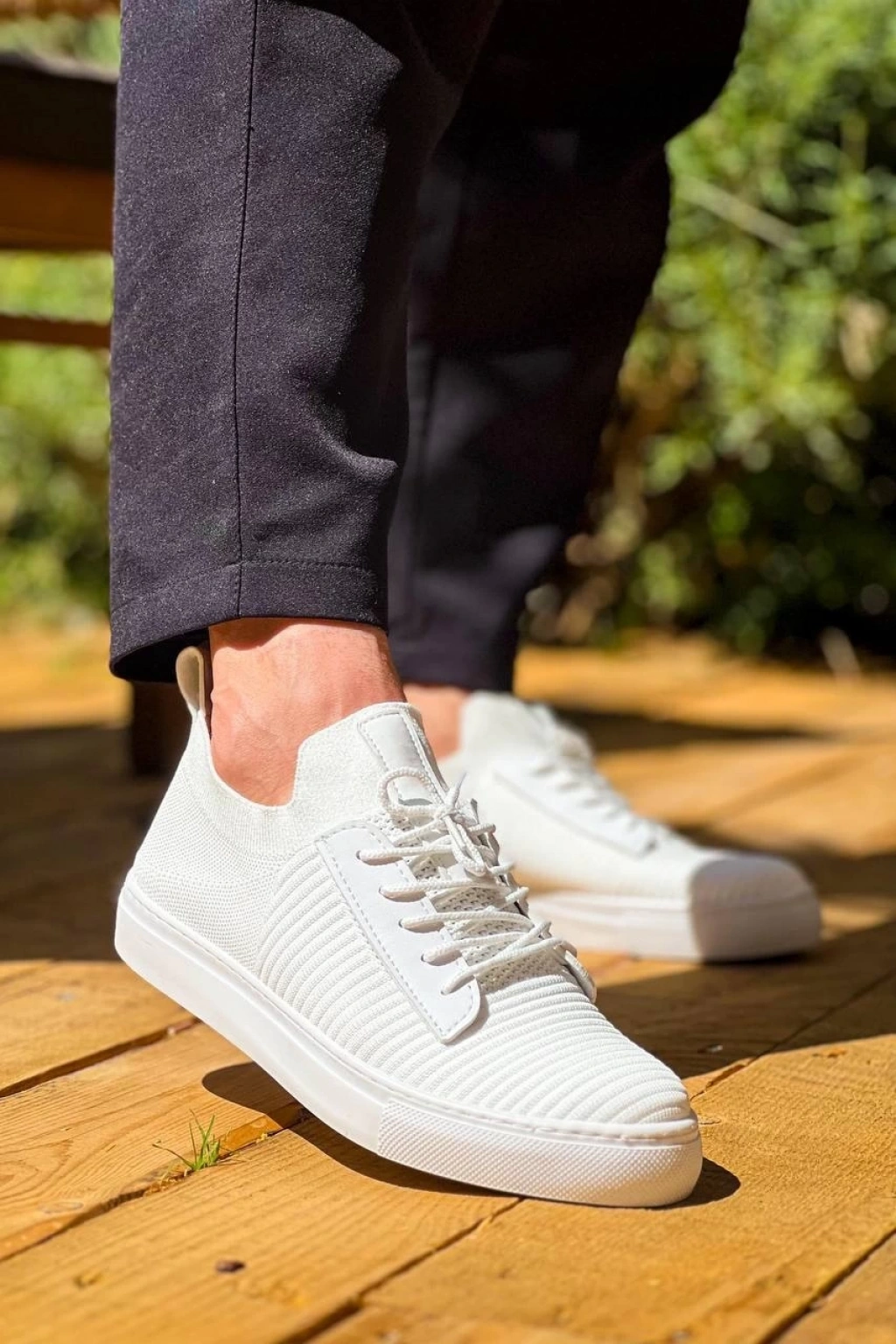 KB-110 Kuback Beyaz Triko Yüksek Taban Bağcıklı Günlük Erkek Ayakkabı