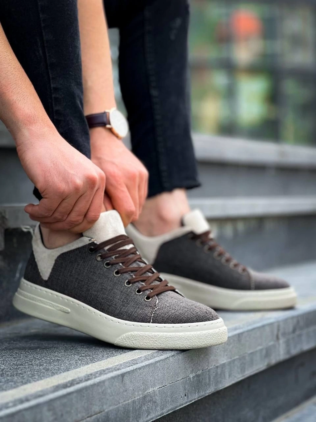 KB-X204 Kuback Taba Bej Keten Bej Yüksek Taban Günlük Erkek Spor Ayakkabı