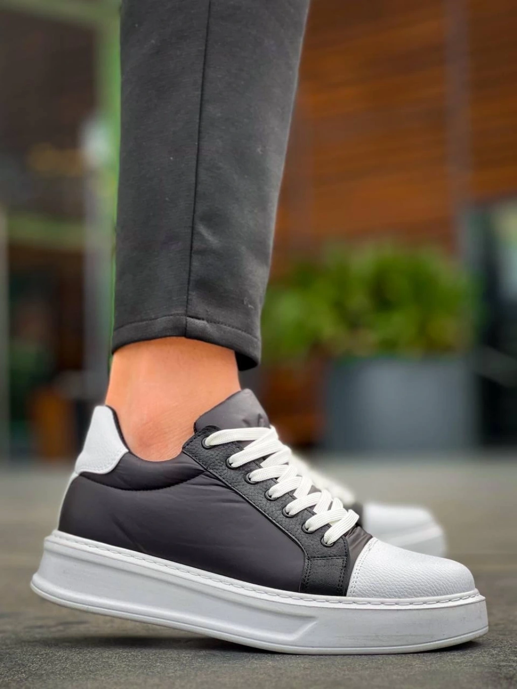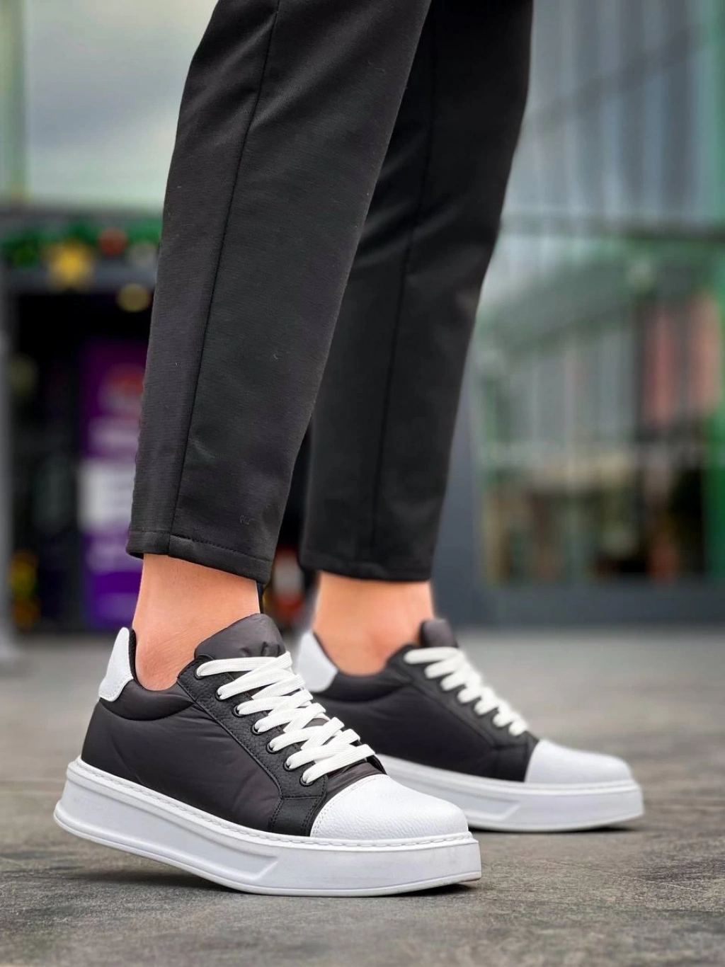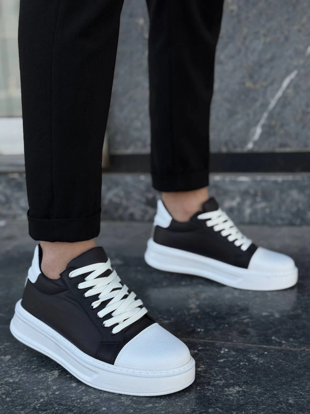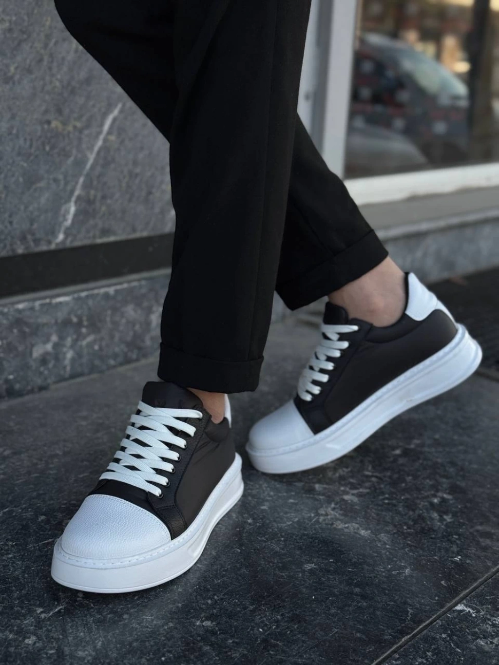 KB-X46 Kuback Siyah Beyaz Yüksek Beyaz Taban Günlük Spor Ayakkabı