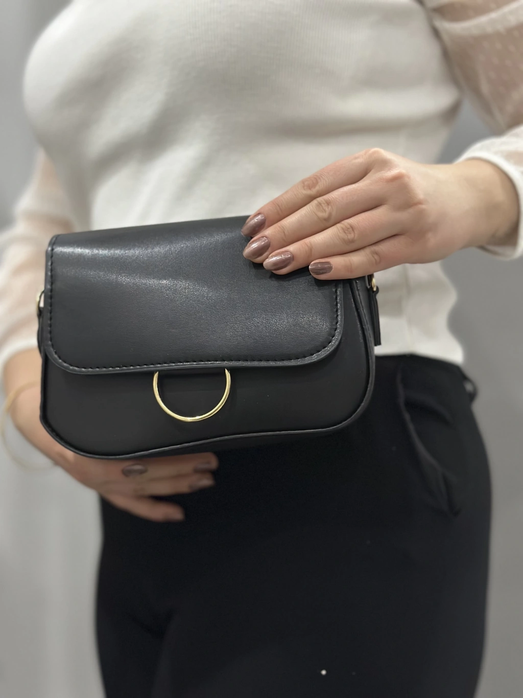 Siyah cilt mossi çanta