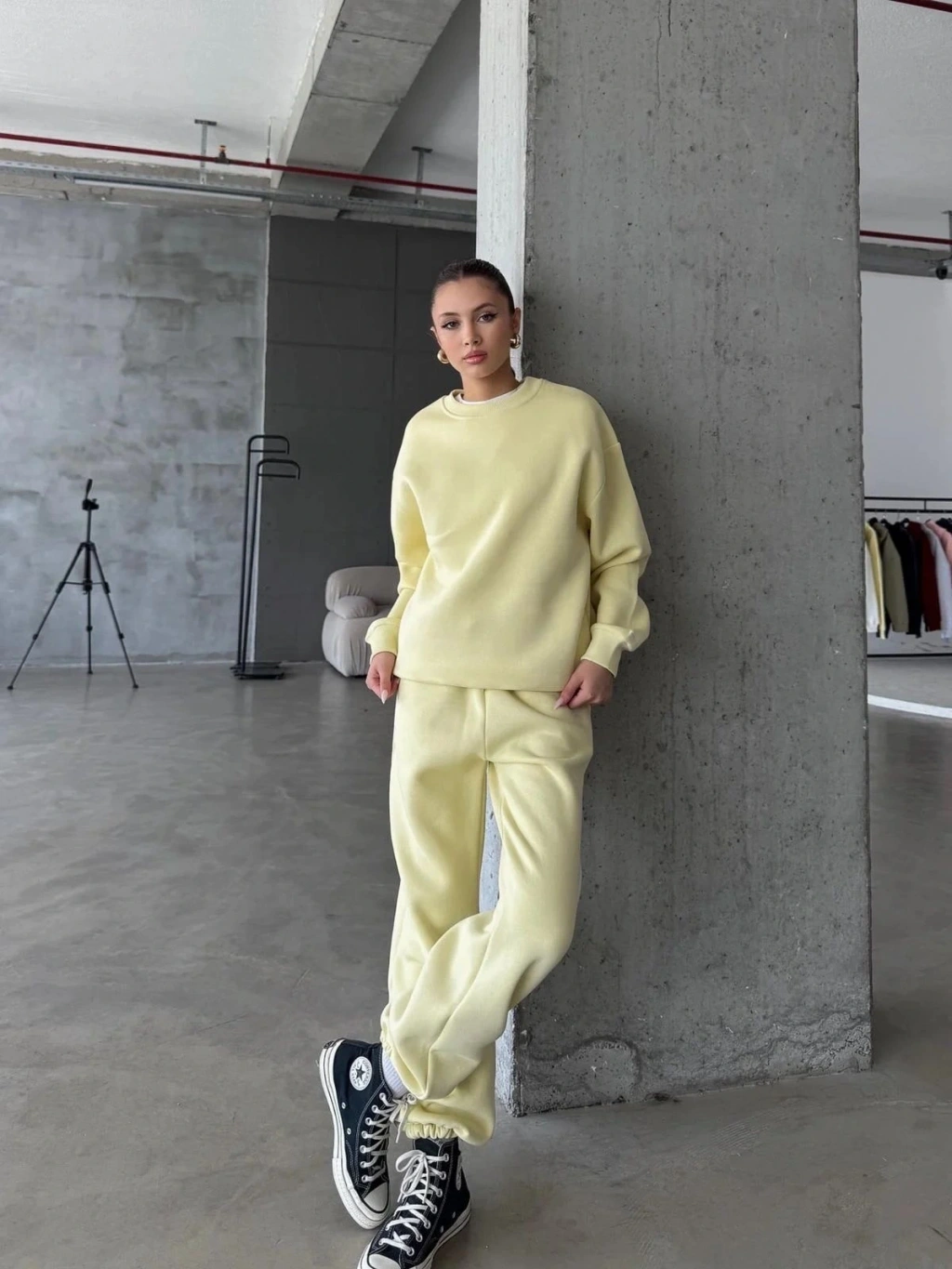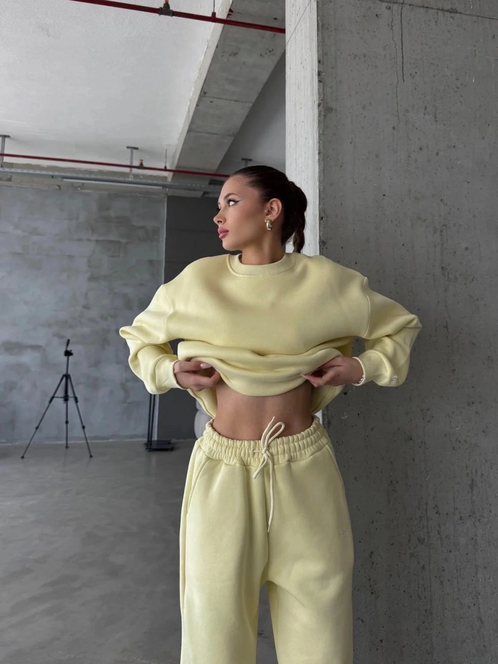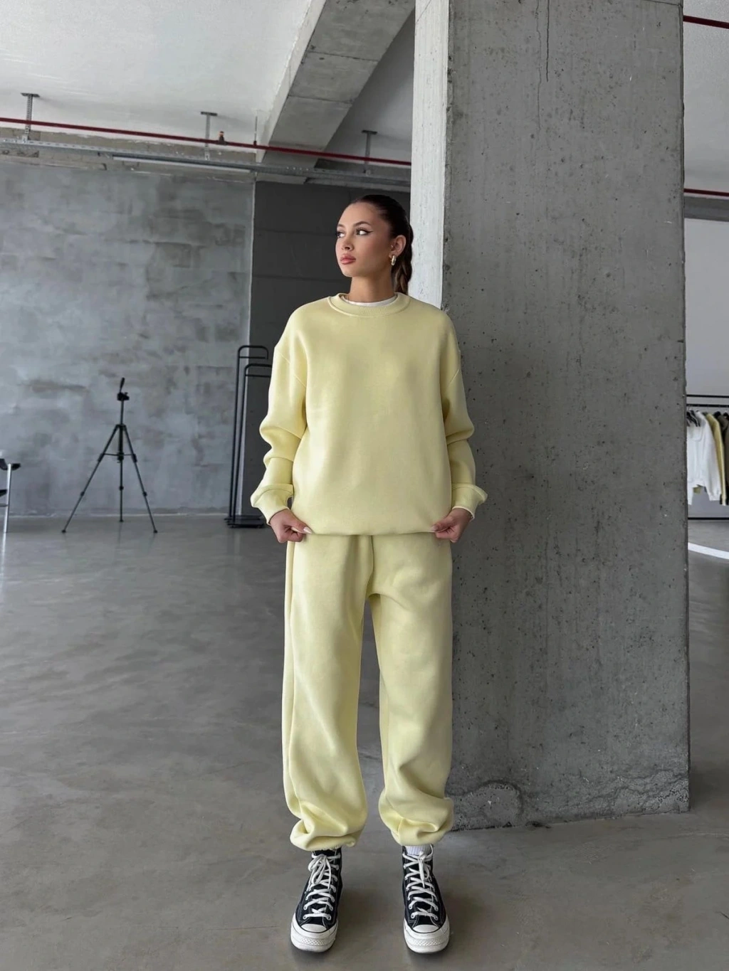 3 iplik şardonlu Lastik paça eşofman sarı p510439