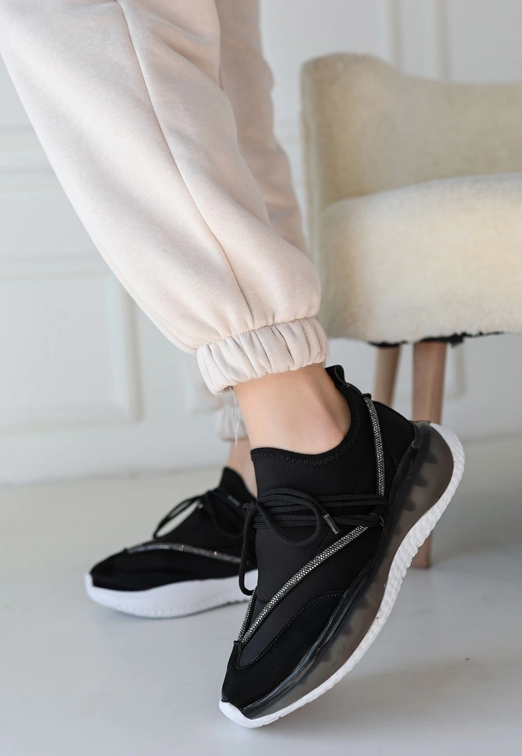Liney Siyah Rugan Bağcıklı Spor Ayakkabı