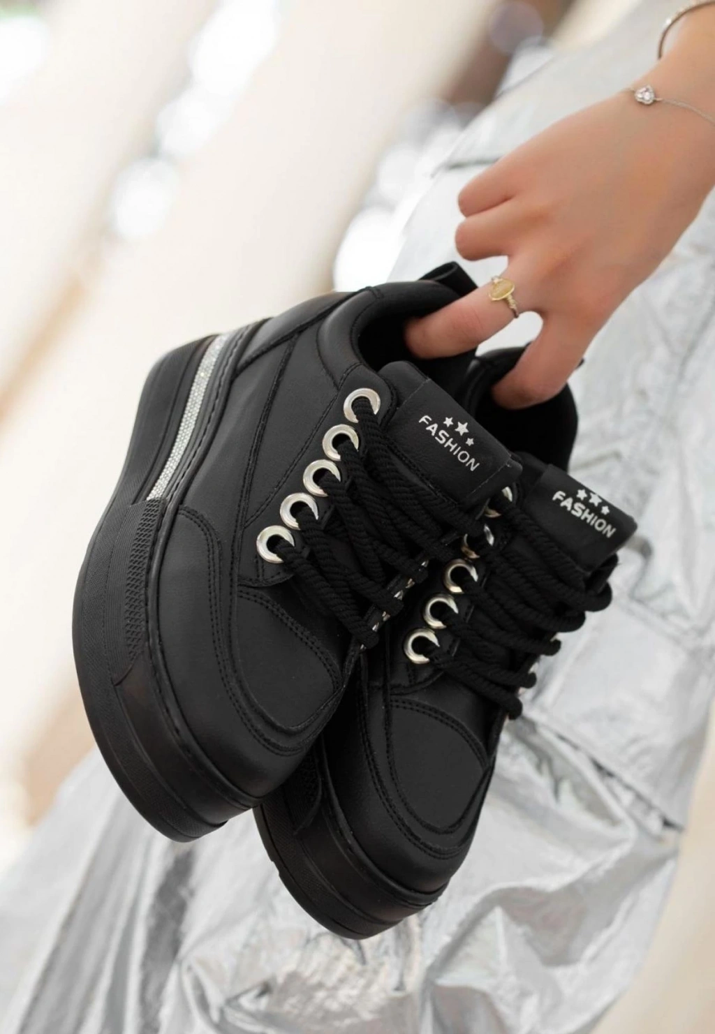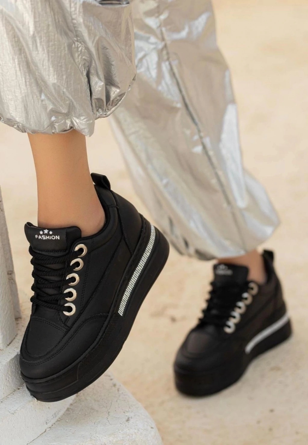 Lulu Siyah Cilt Bağcıklı Spor Ayakkabı