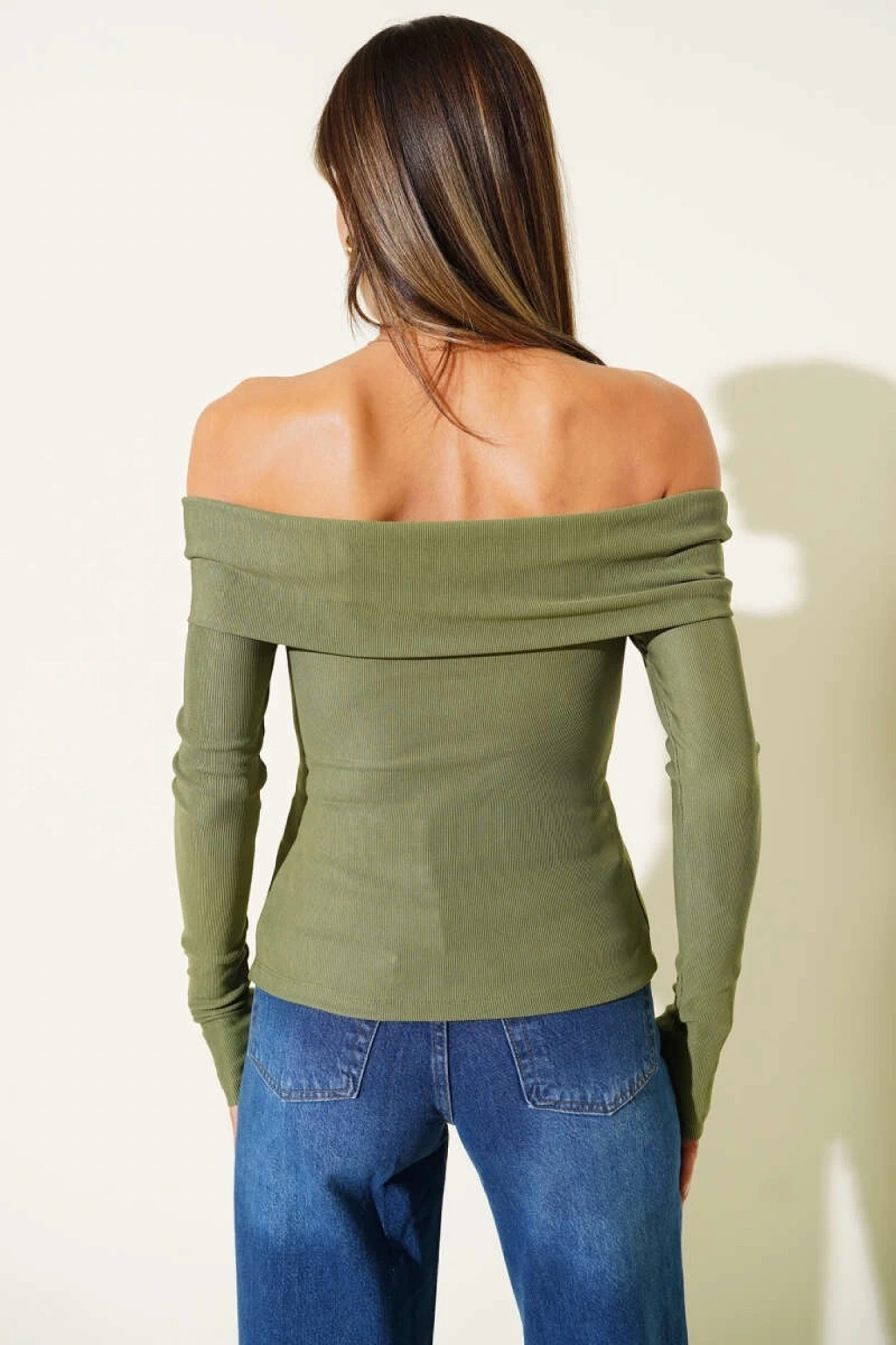 Madonna Yaka Düğmeli Bluz yeşil t4329
