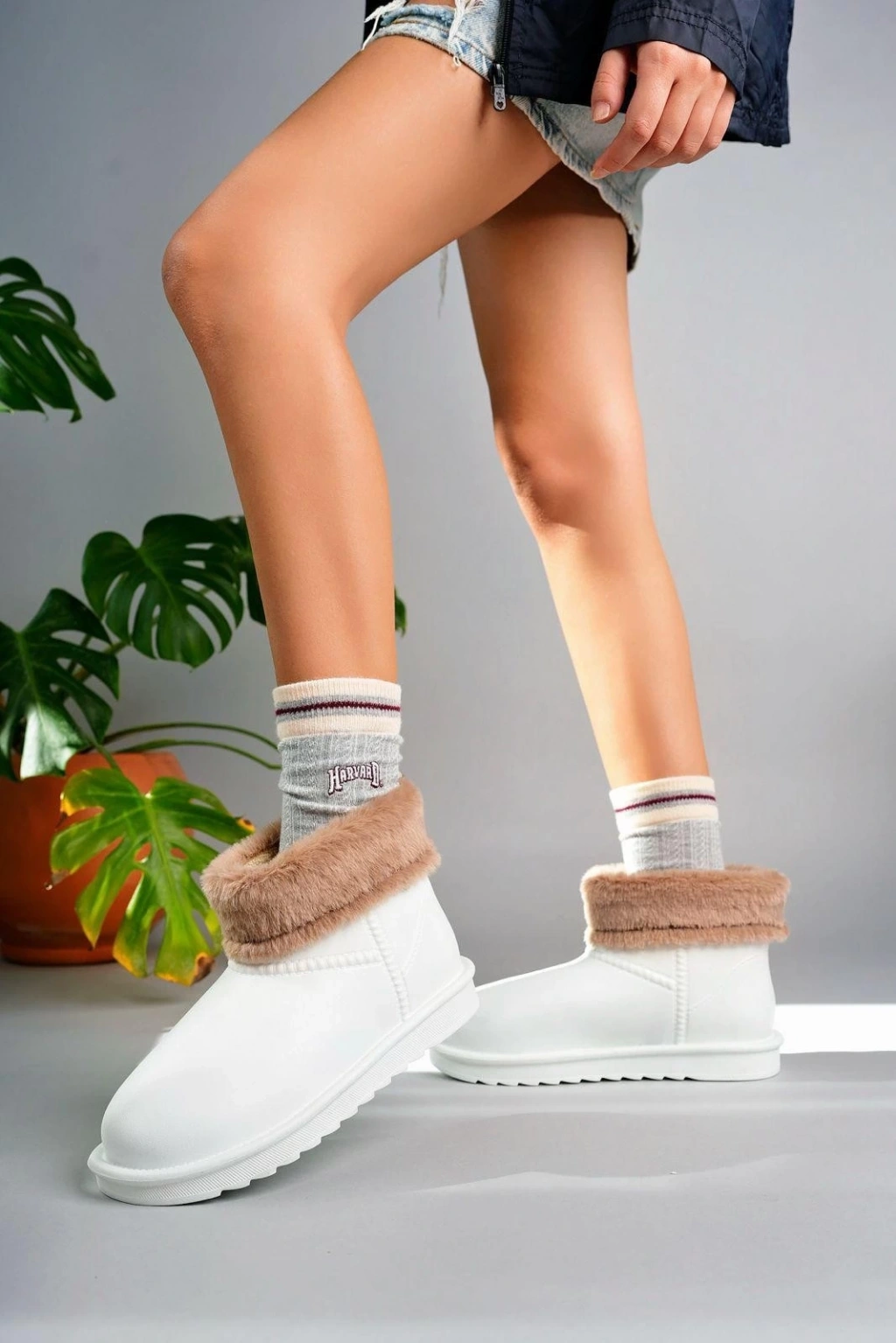 Mordi Beyaz Oval Burunlu Su Geçirmez İçi Kürklü Bot