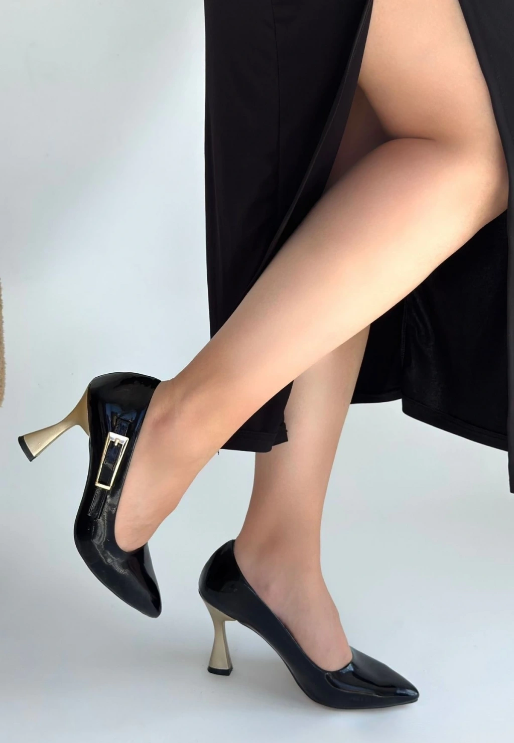 Motya Siyah Rugan Topuklu Ayakkabı