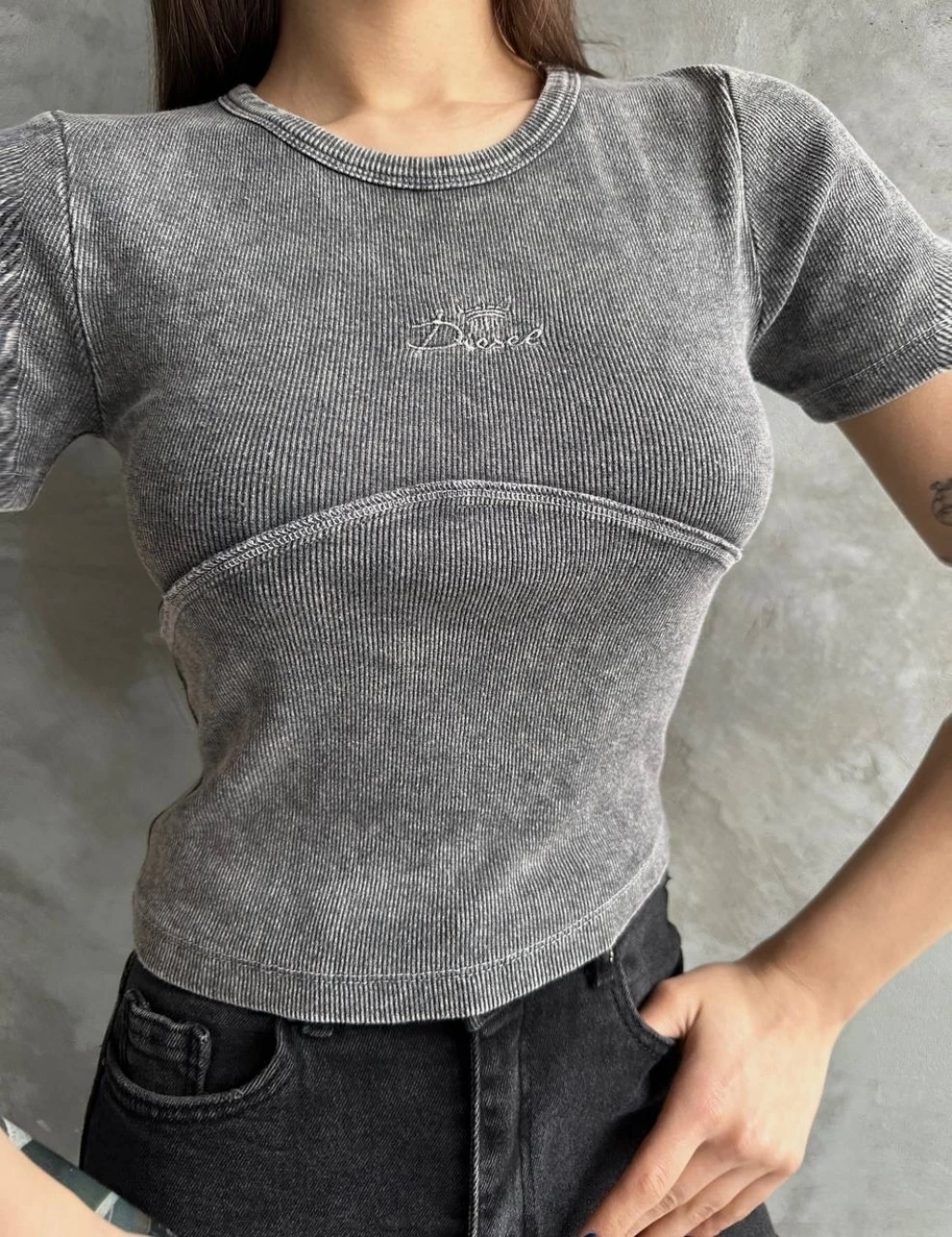 Nakış işlemeli asit yıkamalı bluz