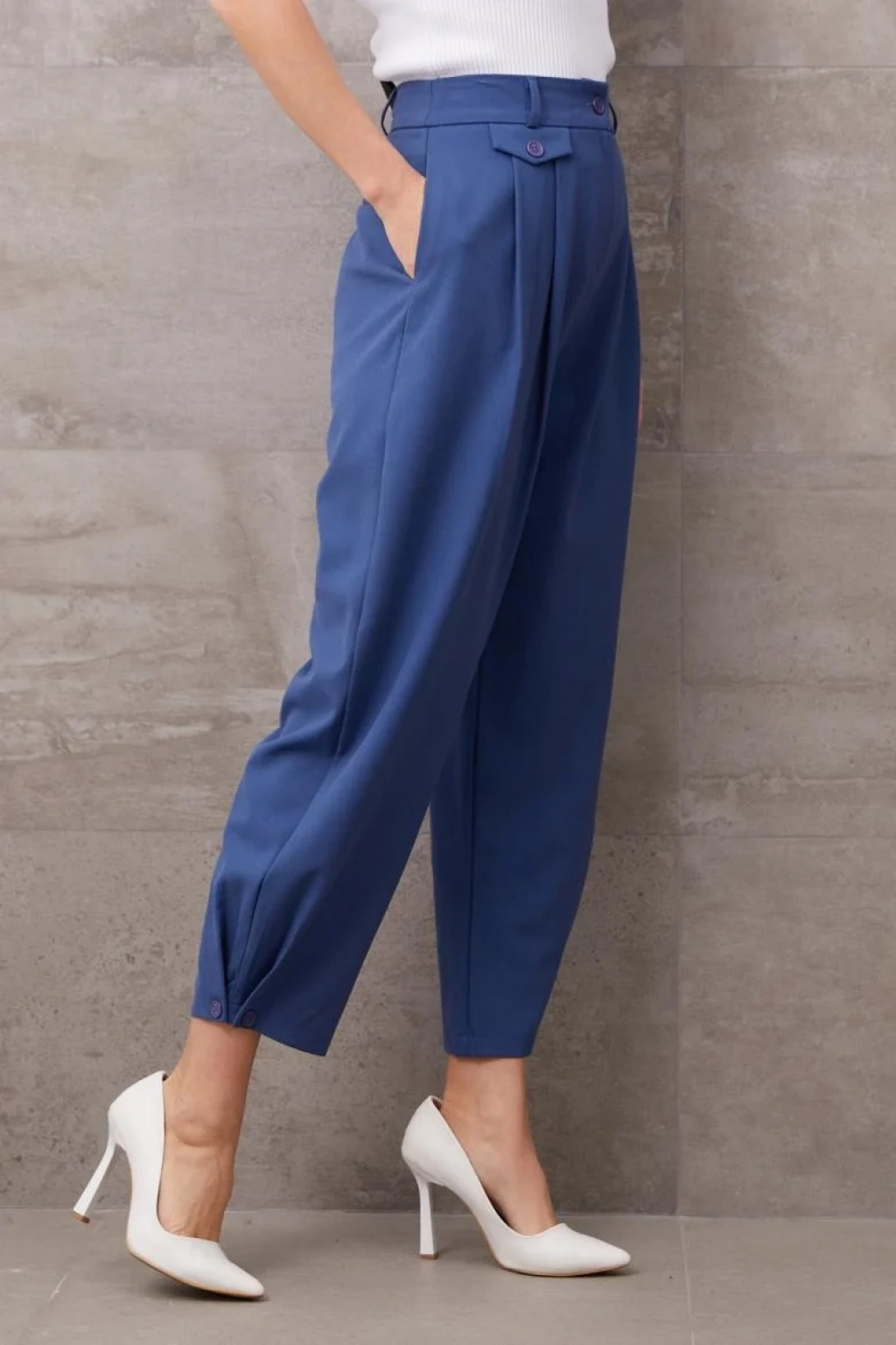 Paçası Düğmeli Yüksek Bel Pantolon