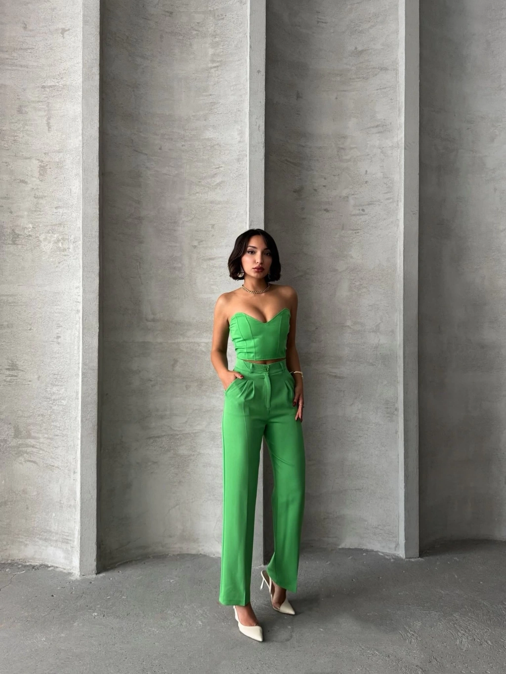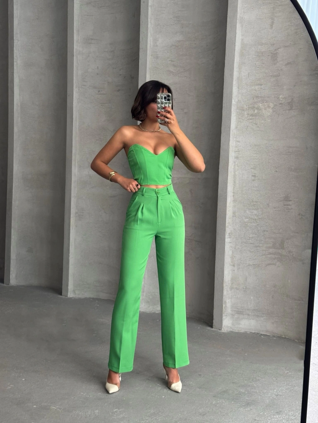 Palazzo pantolonlu alt üst takım yeşil