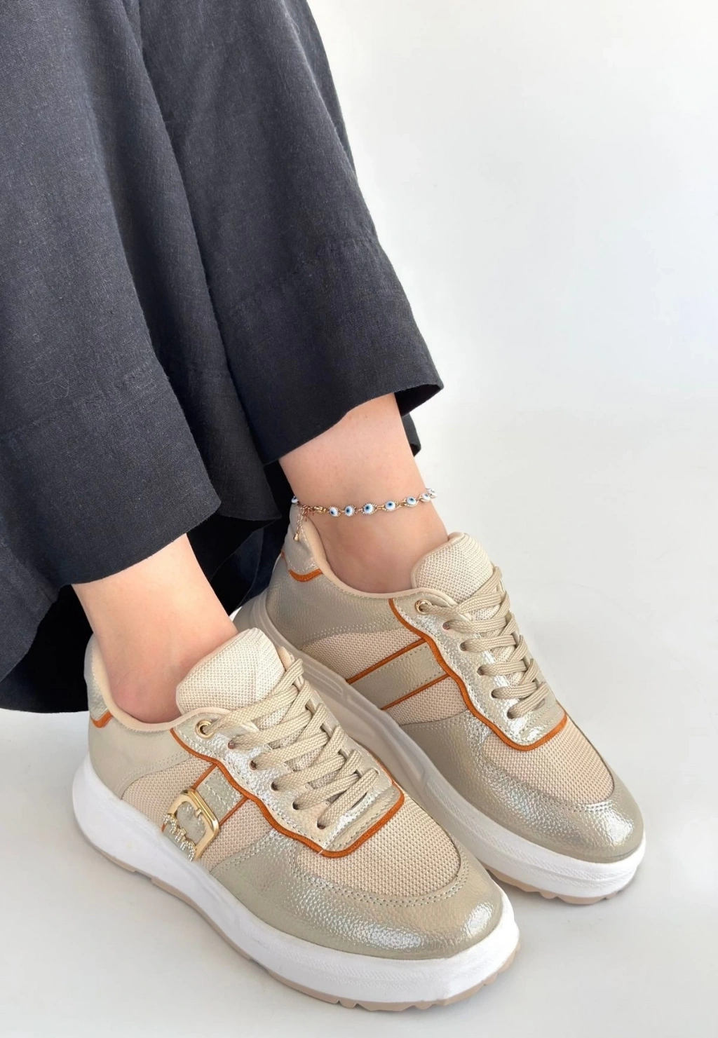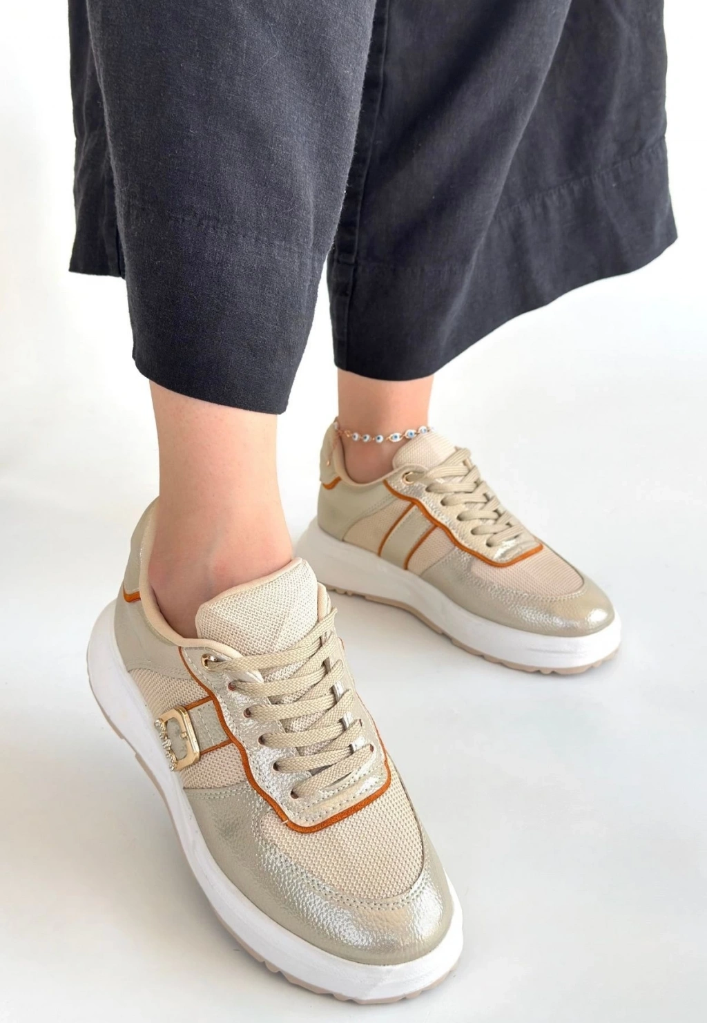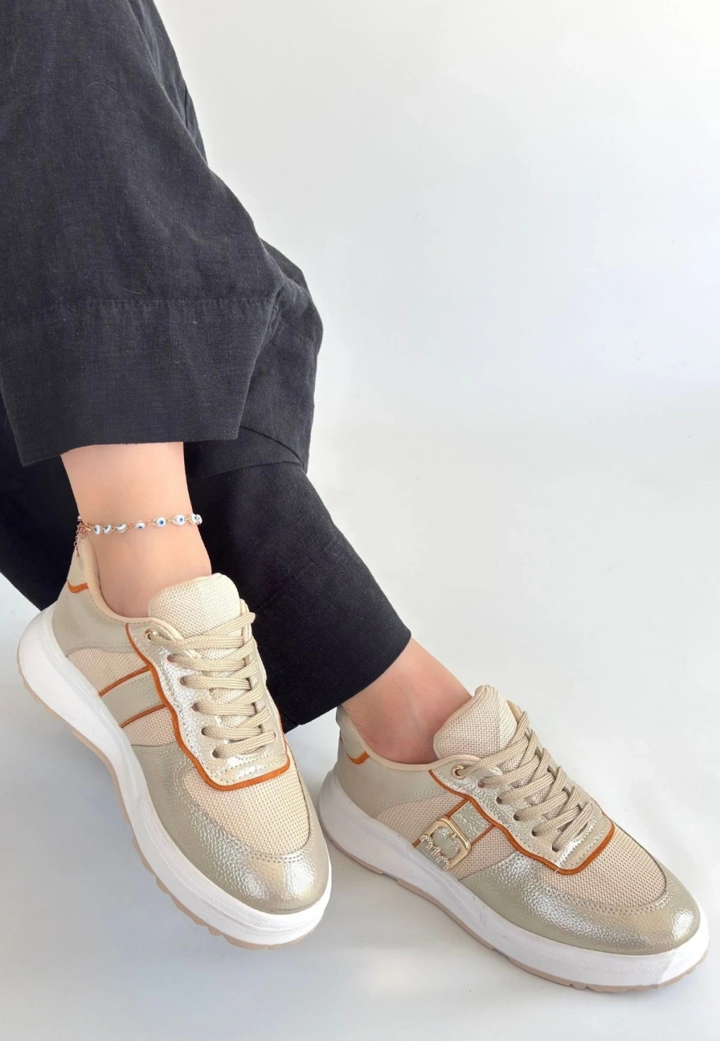 Tanwe Bej Cilt Bağcıklı Spor Ayakkabı