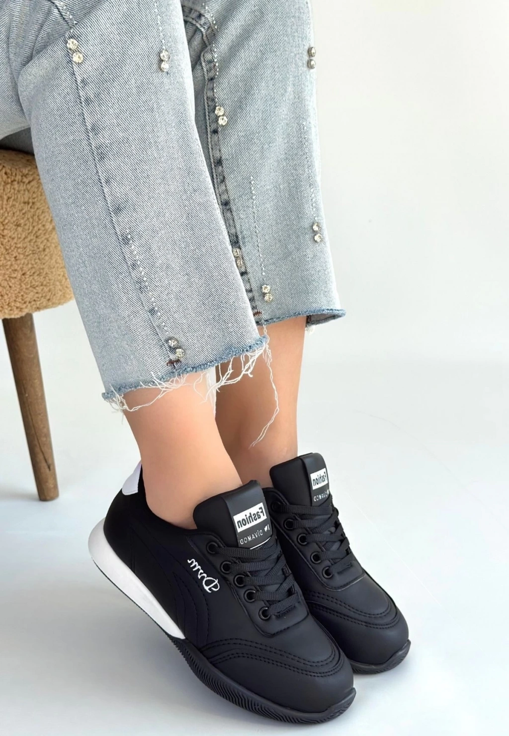 Tawen Siyah Cilt Bağcıklı Spor Ayakkabı