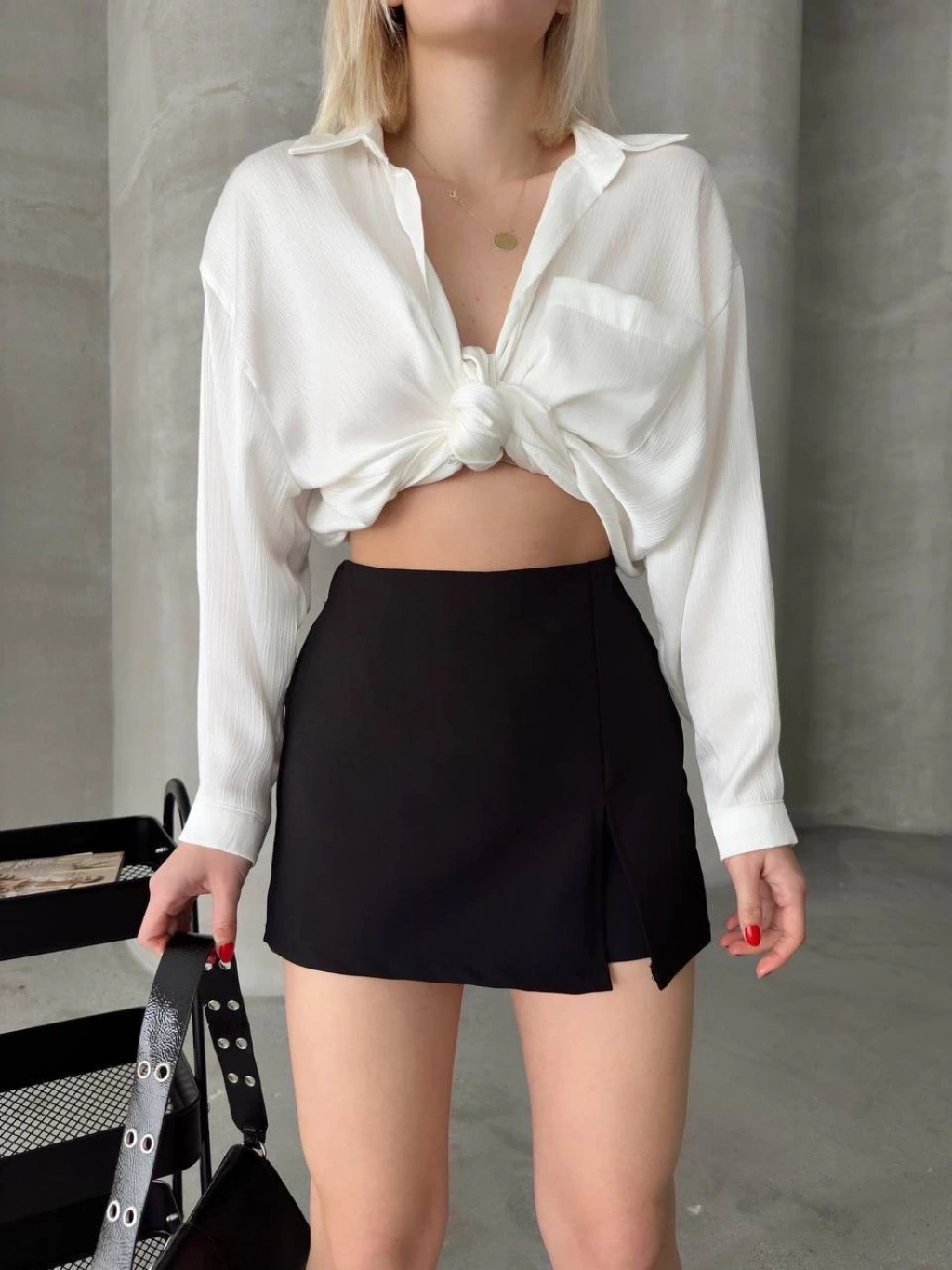 Tek yırtmajlı şort etek