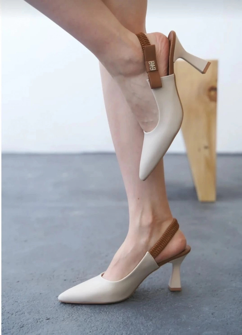 Toran Bej Cilt Topuklu Ayakkabı