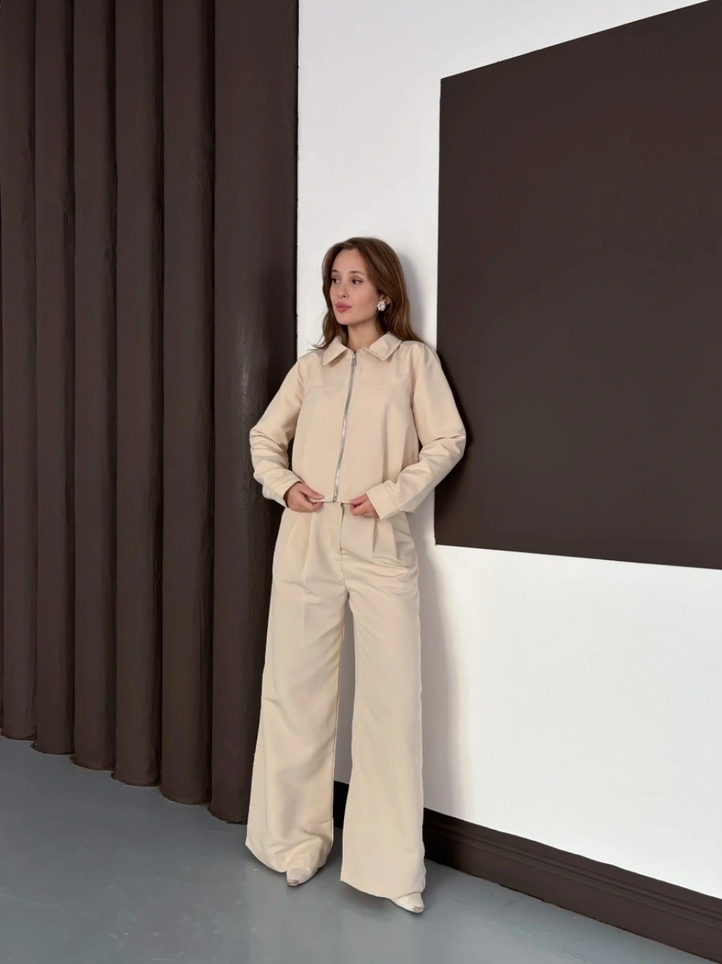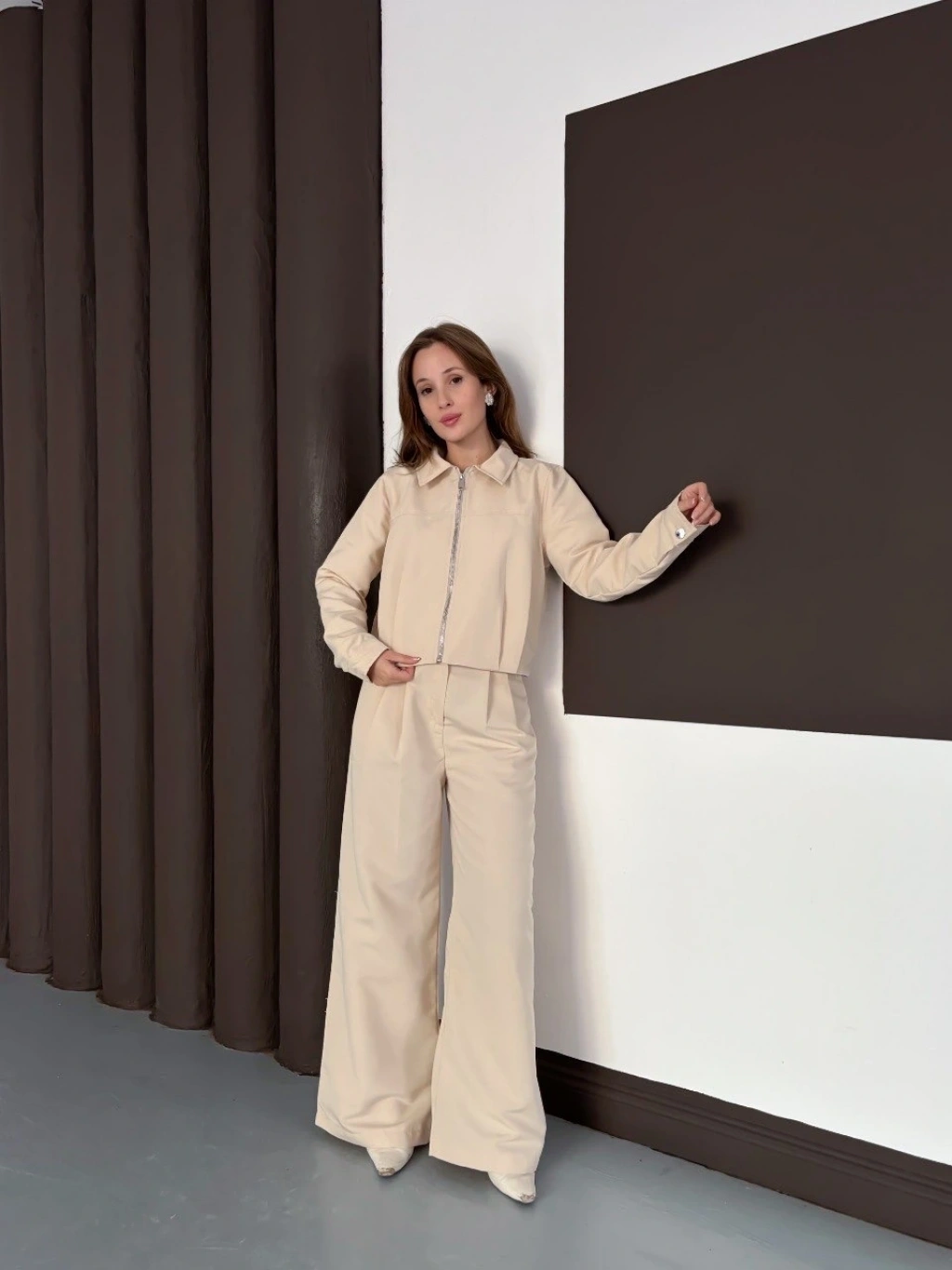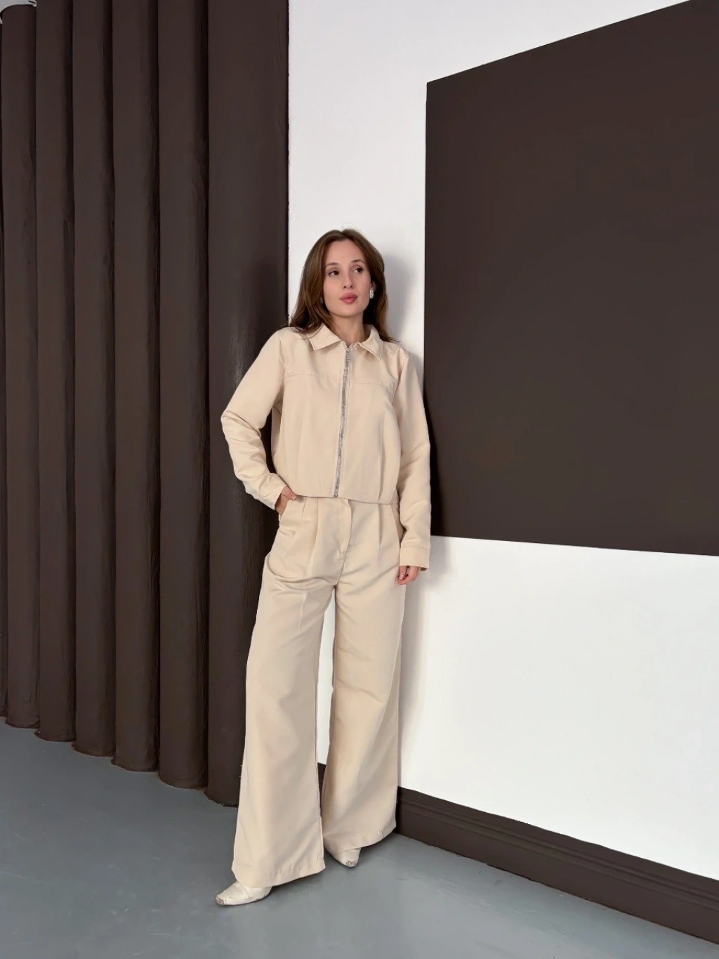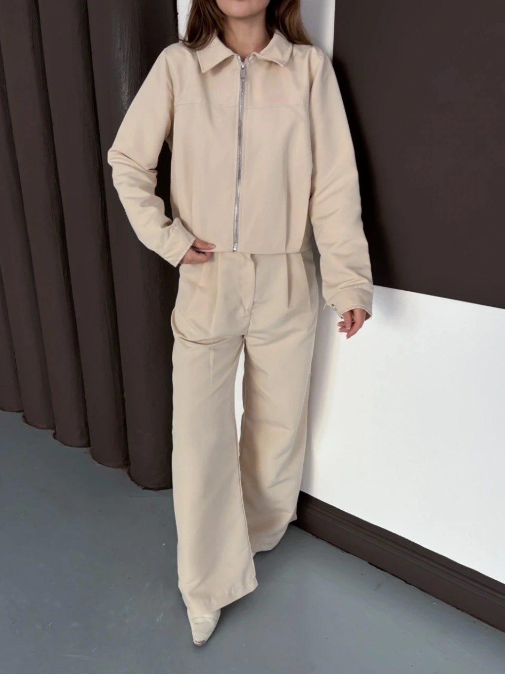 Trenç takım alt üst bej ons