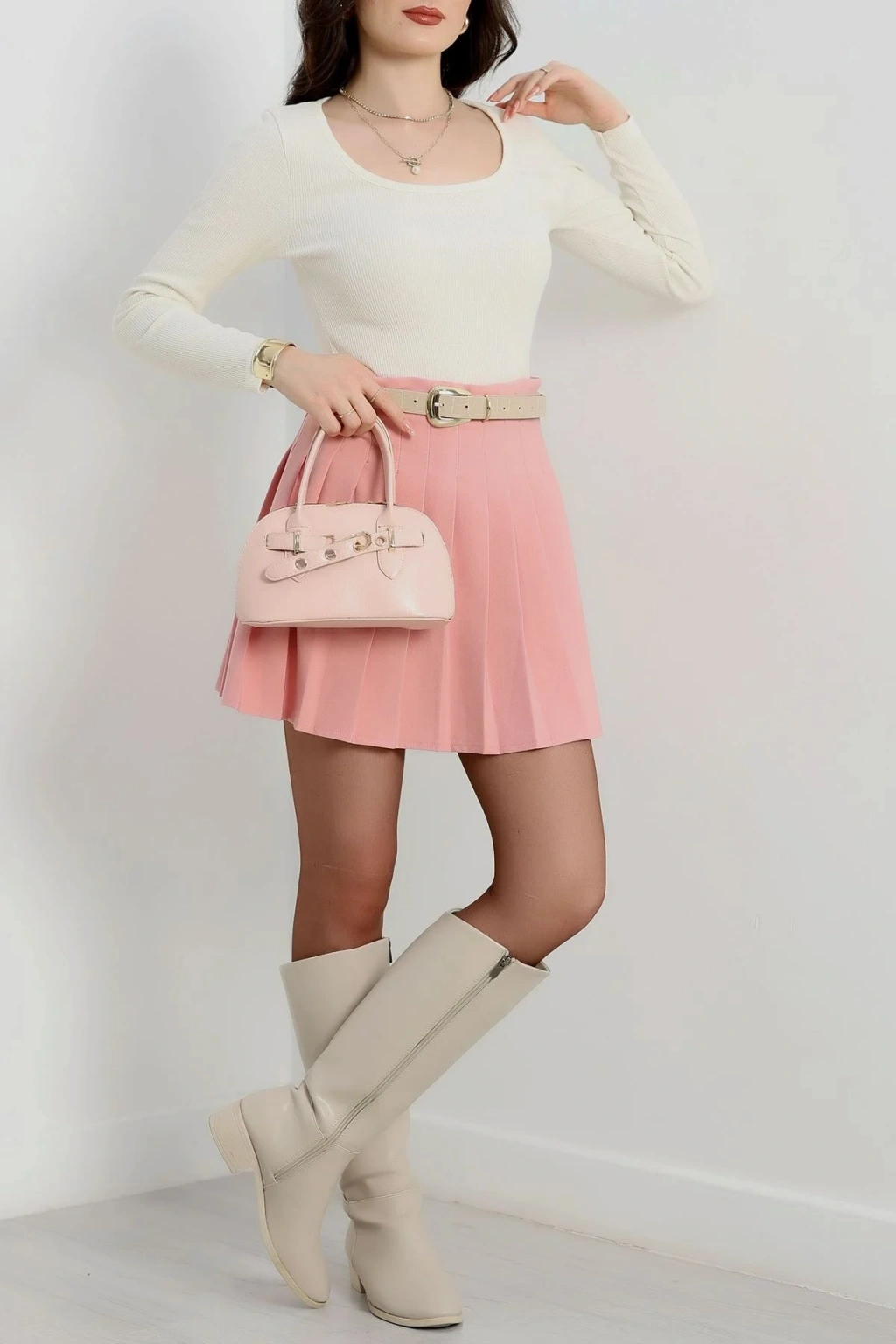 U yaka kaşkorse bluz beyaz A132