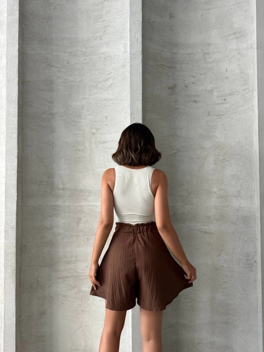 Volanlı keten şort kahve s255058