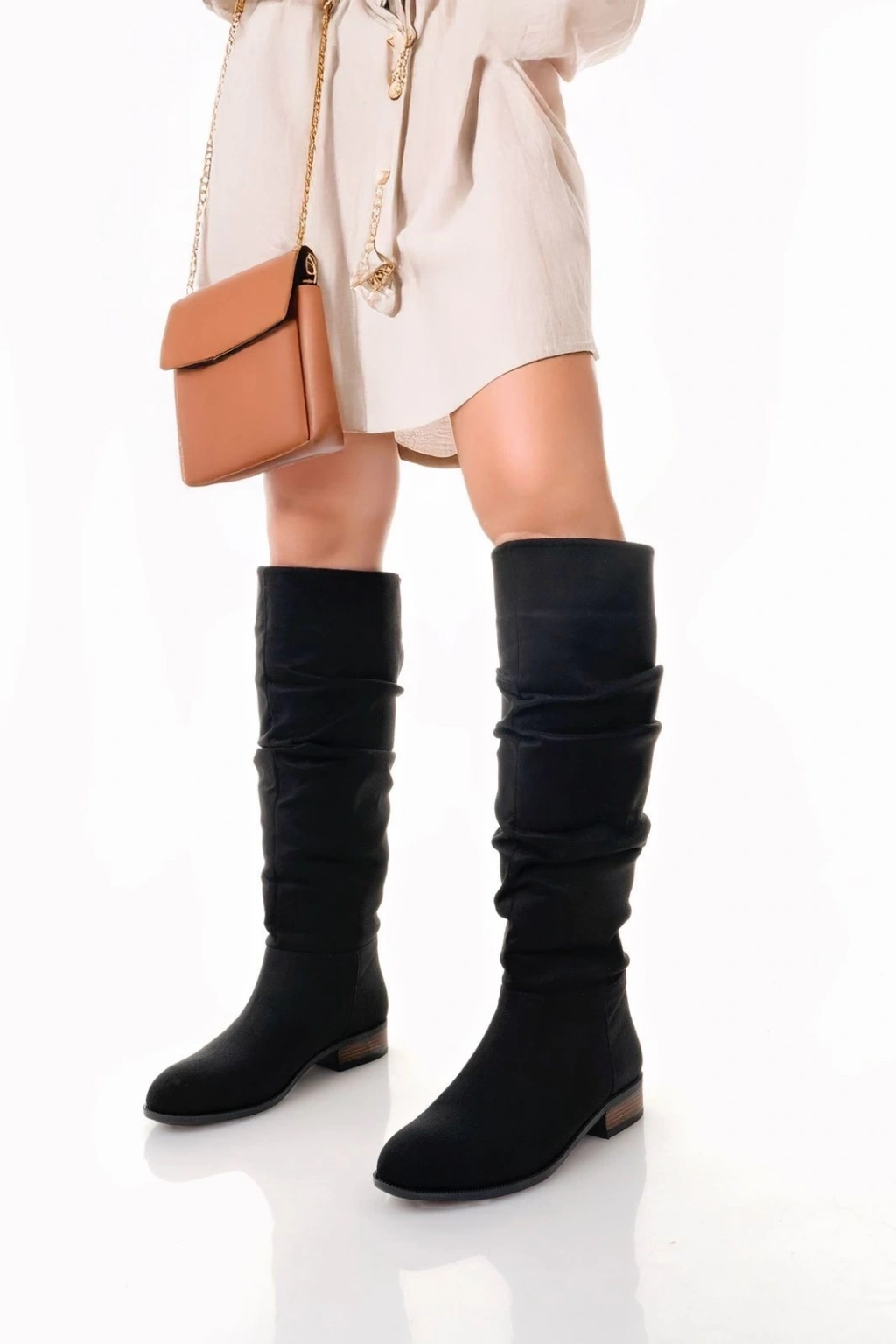 Winda Siyah Süet Körüklü Çizme