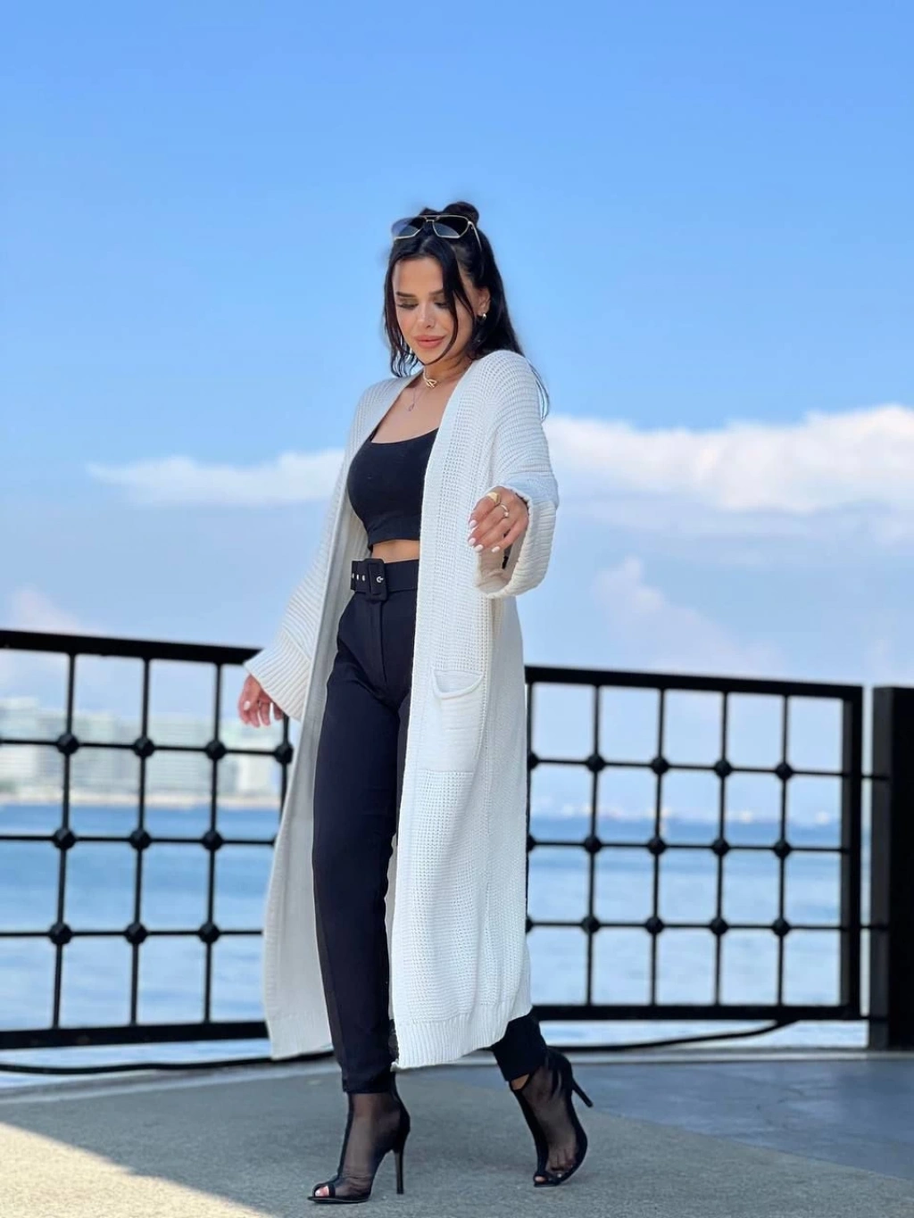 Yarasa kol uzun triko hırka beyaz