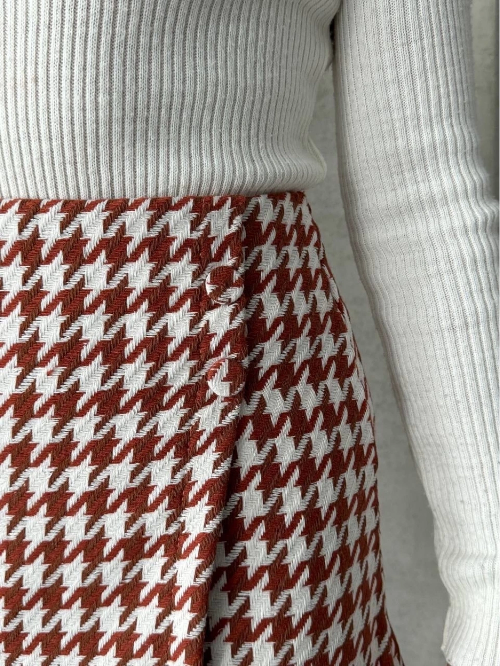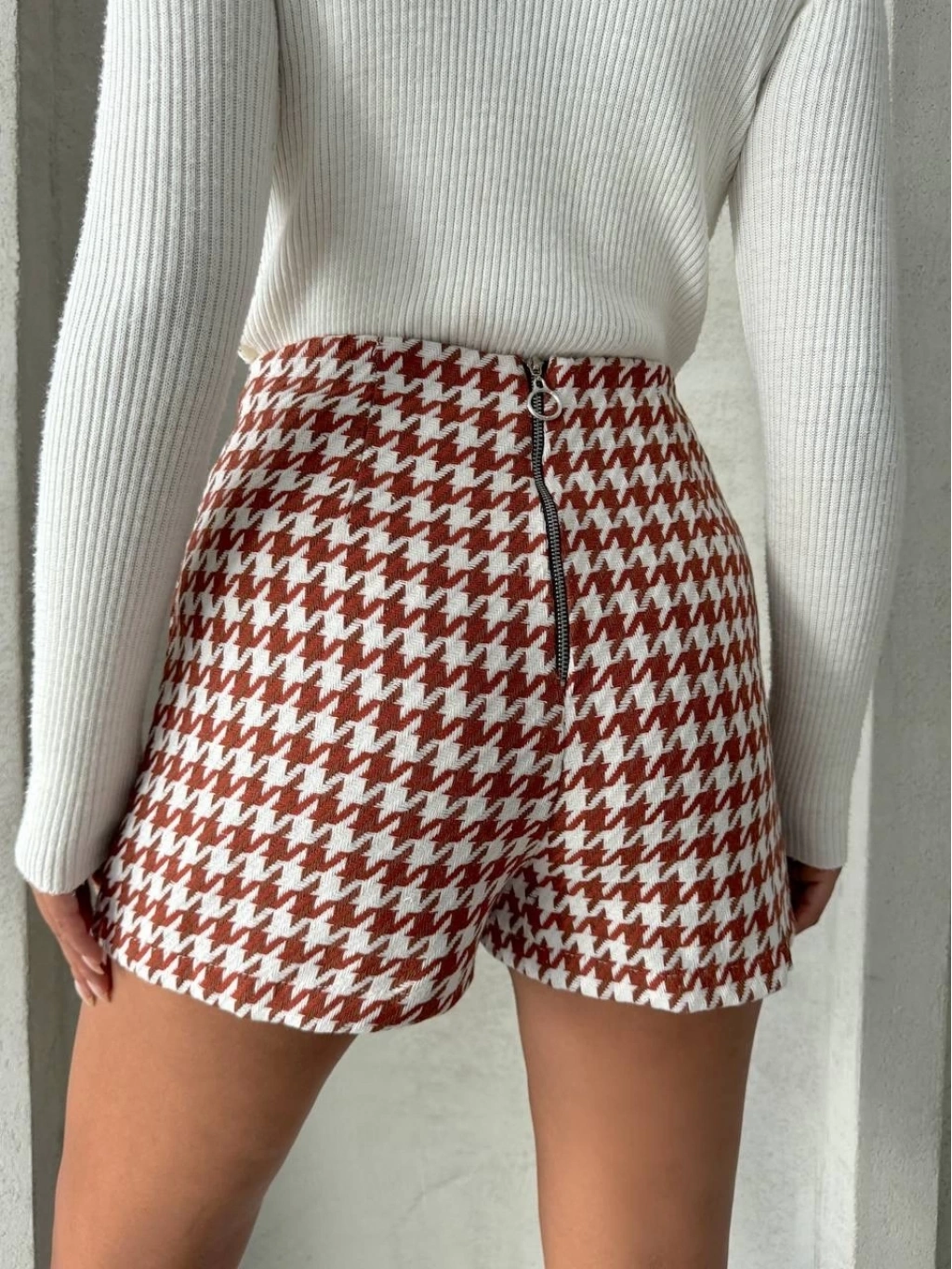 İki düğmeli kaz ayağı desen ch kumaş şort etek bordobeyaz h26414