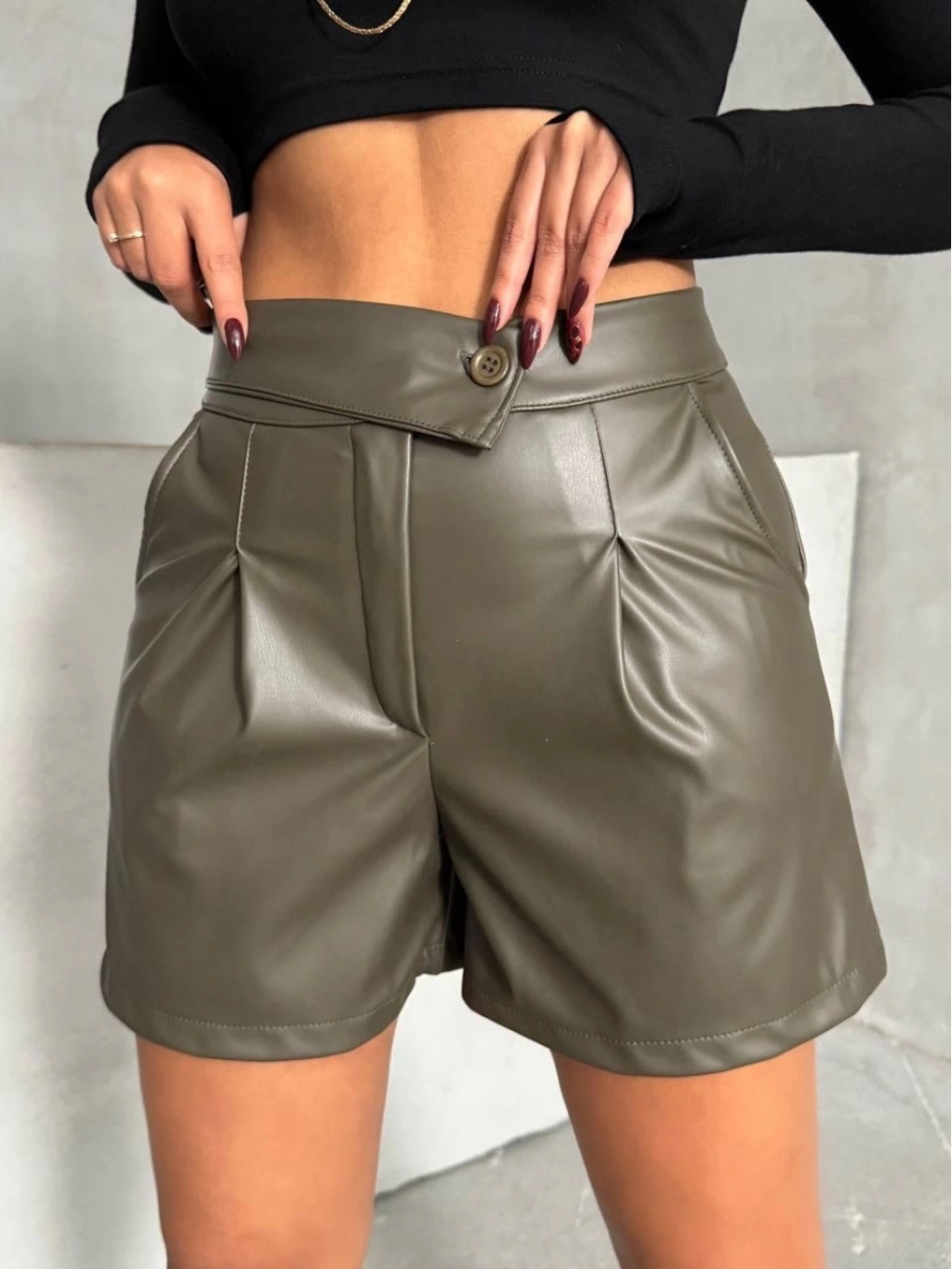 • İki düğmeli pileli şort