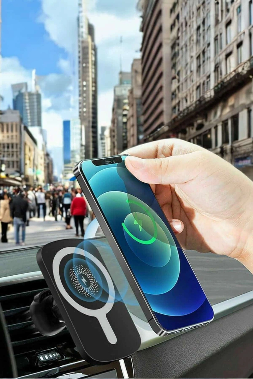 MagSafe uyumlu araç telefon tutucu, iPhone 12, 13 ve 14 Uyumlu  serilerinin yanı sıra MagSafe kılıfı kullanan cihazlarla da kusursuz uyum sağlar. Manyetik yüzeyi sayesinde cihazınızı sadece tutucu üzerine bırakmanız yeterlidir. Kablosuz şarj teknolojisi ile 15W hızlı şarj imkanı sunarak telefonunuzu güvenli ve hızlı bir şekilde şarj eder. Akıllı çipi, şarj sürecini optimize ederek aşırı voltaj, aşırı akım ve kısa devre gibi sorunlara karşı tam koruma sağlar.