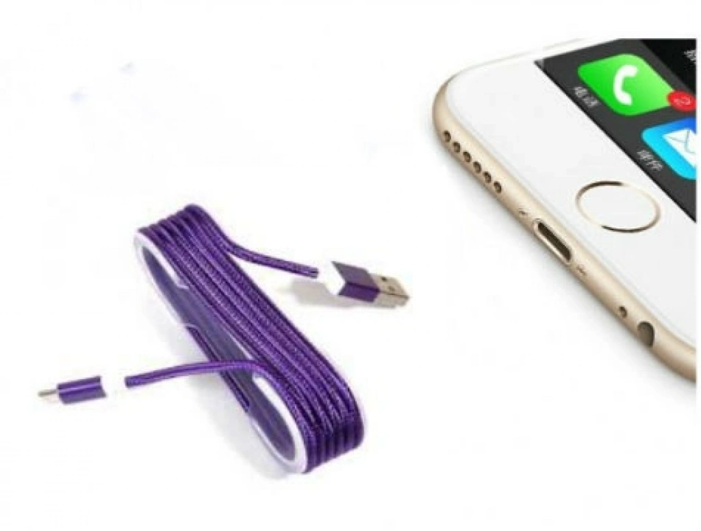 iPhone Örgü Şeklinde Renkli Çelik Şarj Data Kablosu - Mor