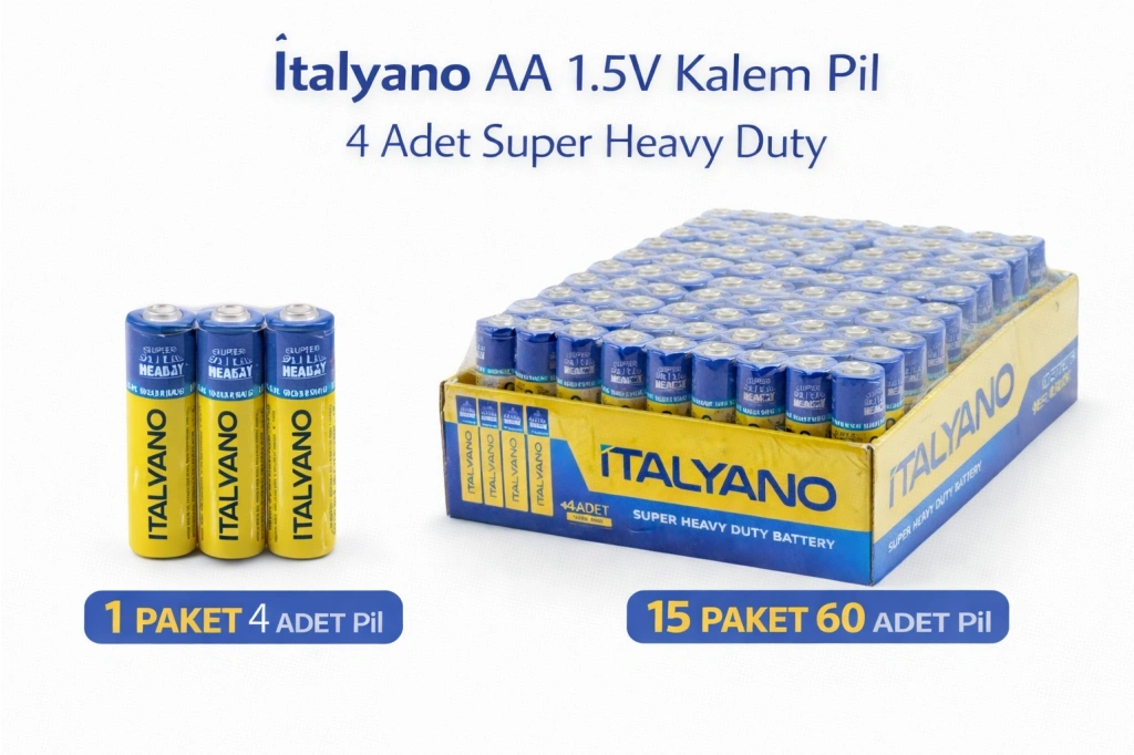 İtalyano AA 1.5V Kalem Pil 4 Adet Super Heavy Duty 1 Paket ve 15 Paket Seçenekli