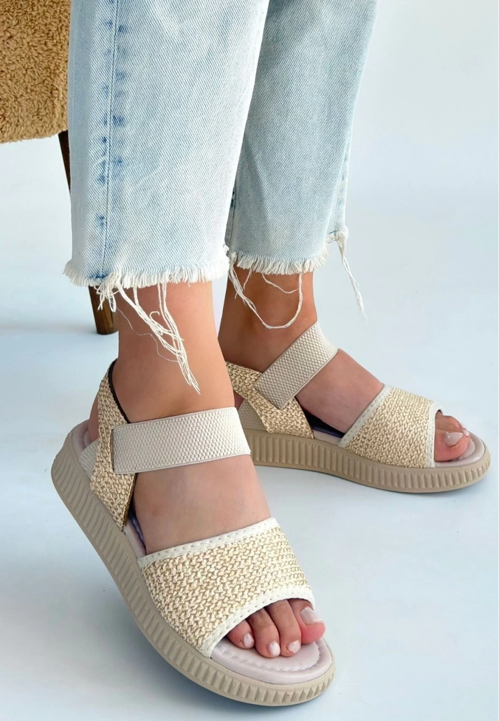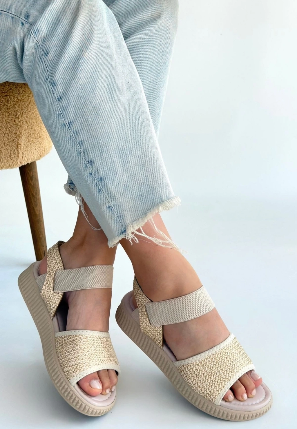 • Jake Bej Hasır Cilt Sandalet