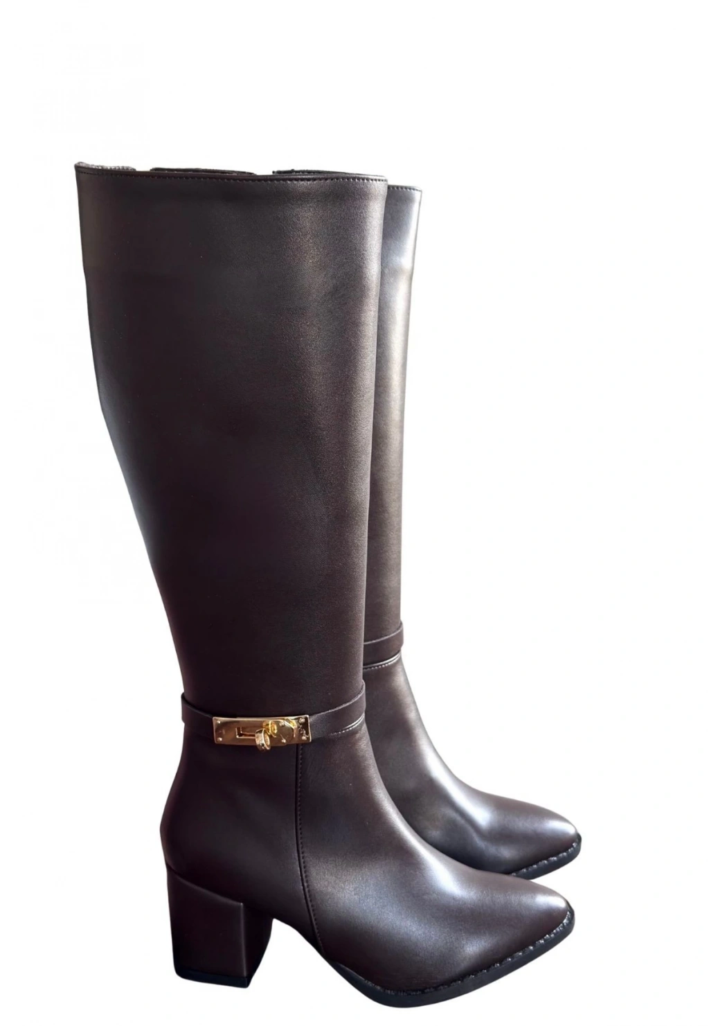 • Jeoli Kahverengi Cilt Topuklu Çizme