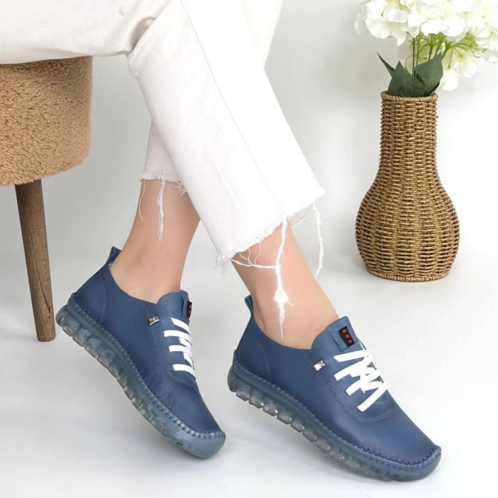 • Jiten Mavi Deri Bağcıklı Spor Ayakkabı