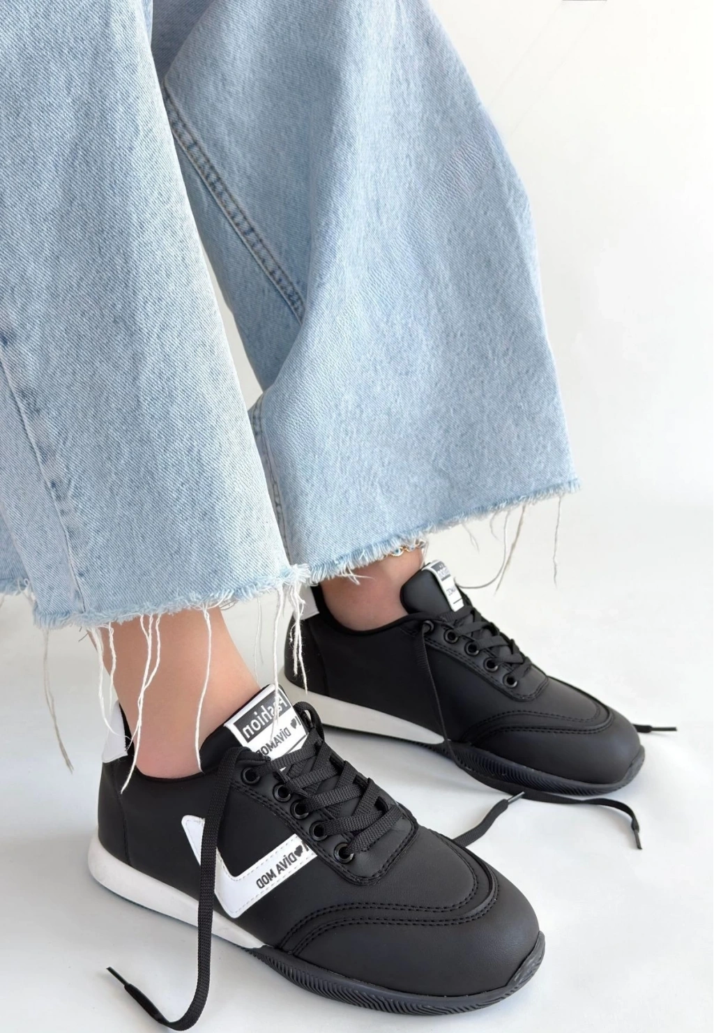 • Jowen Siyah Cilt Beyaz Detaylı Bağcıklı Spor Ayakkabı