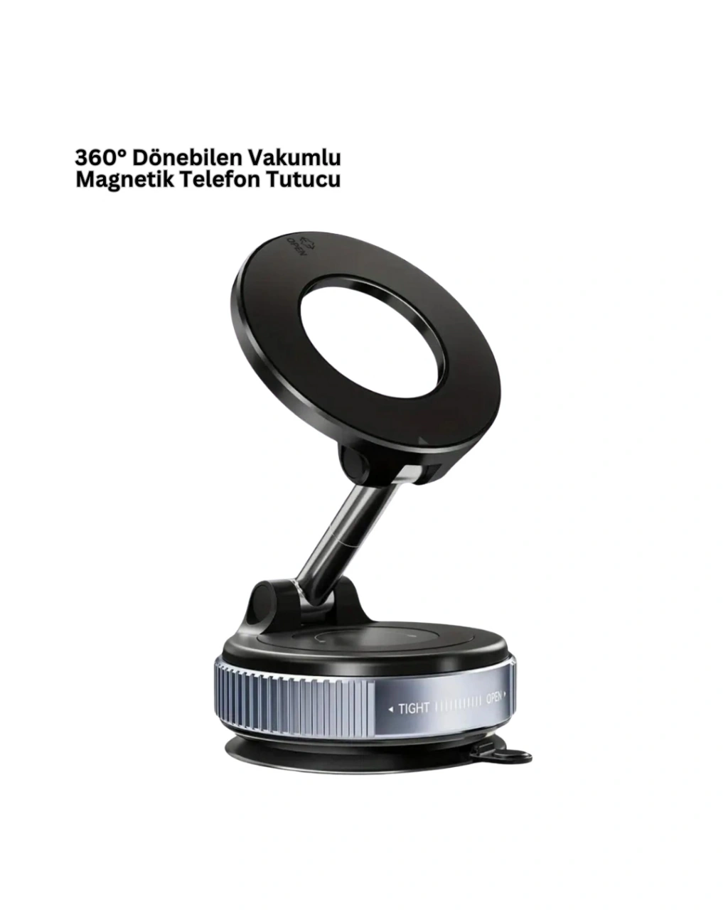Manyetik vakumlu araç telefon tutucu, pratik kullanım ve güvenliği bir arada sunar. Güçlü mıknatıs yapısı, telefonu en zorlu yol koşullarında bile sabit tutar. Vakumlu montaj sistemi, sağlam ve iz bırakmayan bir kullanım sağlar.360 derece dönebilen tasarımı, ideal görüş açısını kolayca ayarlamanıza olanak tanır. Alüminyum alaşımlı gövde, dayanıklılık ve şıklığı bir arada sunar. Silikon pedler, telefonunuzu çizilmelere karşı korur.4.7 inç ve üzeri tüm akıllı telefonlarla uyumlu olan bu ürün, günlük sürüşlerde ve uzun yolculuklarda güvenilir bir araç içi aksesuardır.