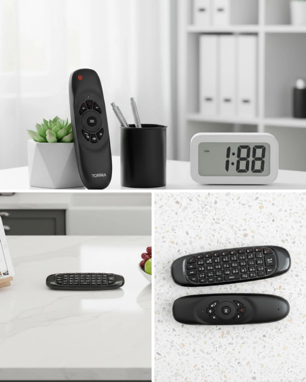 Çift taraflı tasarımı ve çok yönlü fonksiyonlarıyla öne çıkan bu ürün, tek cihazla birden fazla kontrol ihtiyacını karşılar. Kablosuz klavye, hava fare ve uzaktan kumanda özellikleri bir aradadır. Modern ve kompakt yapısı sayesinde çantada kolayca taşınabilir. Eğlence, iş ve günlük kullanım için ideal olan bu cihaz, kullanıcı dostu yapısıyla her seviyeden kullanıcıya hitap eder.