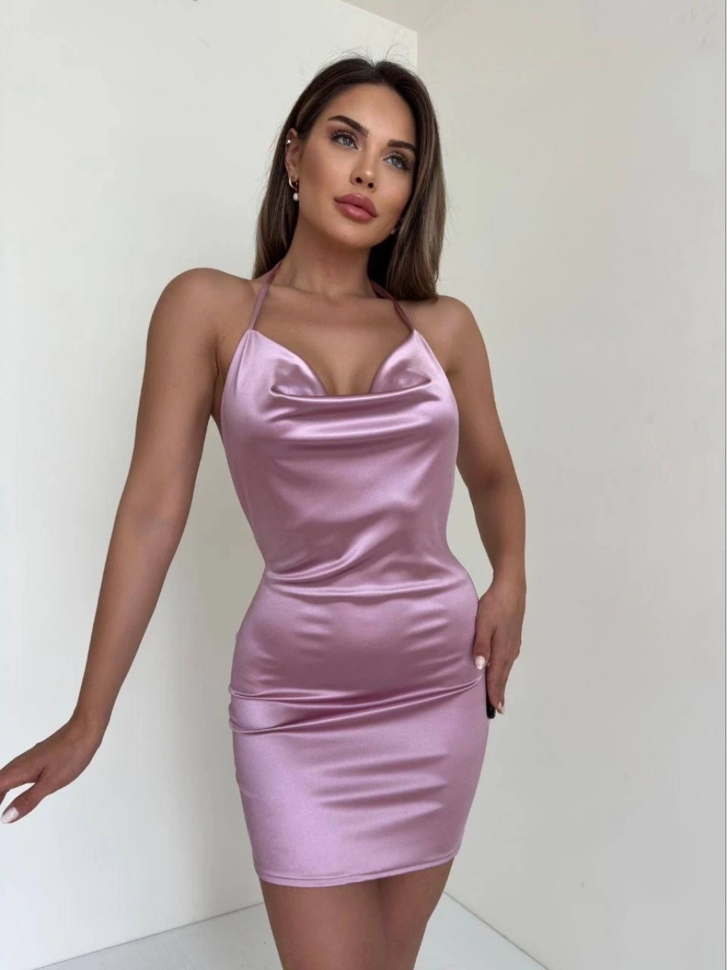 Kadın boyundan ince askılı elbise s3585