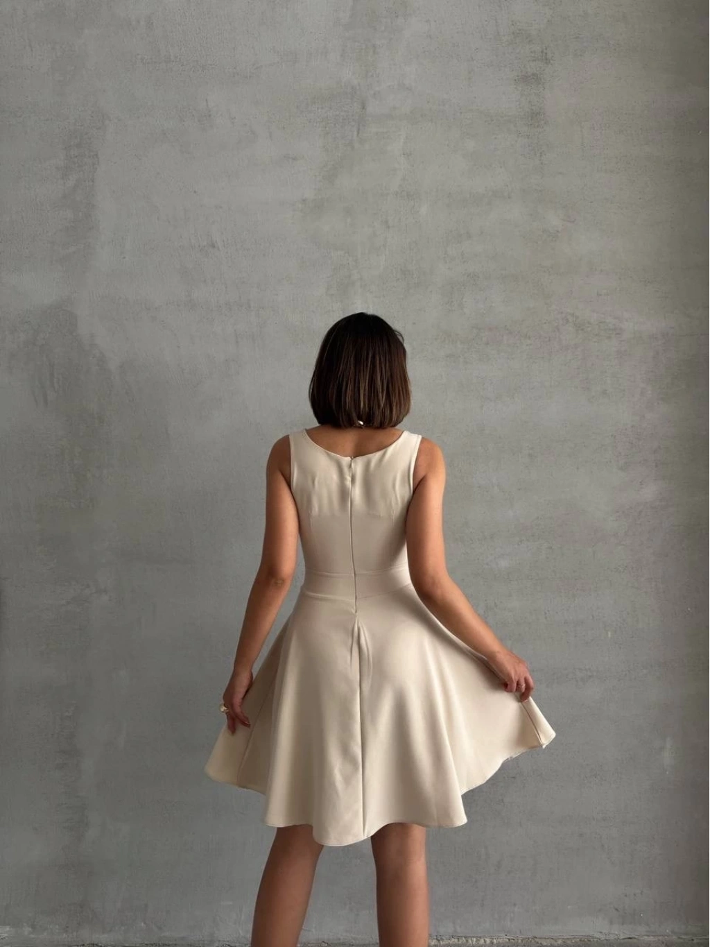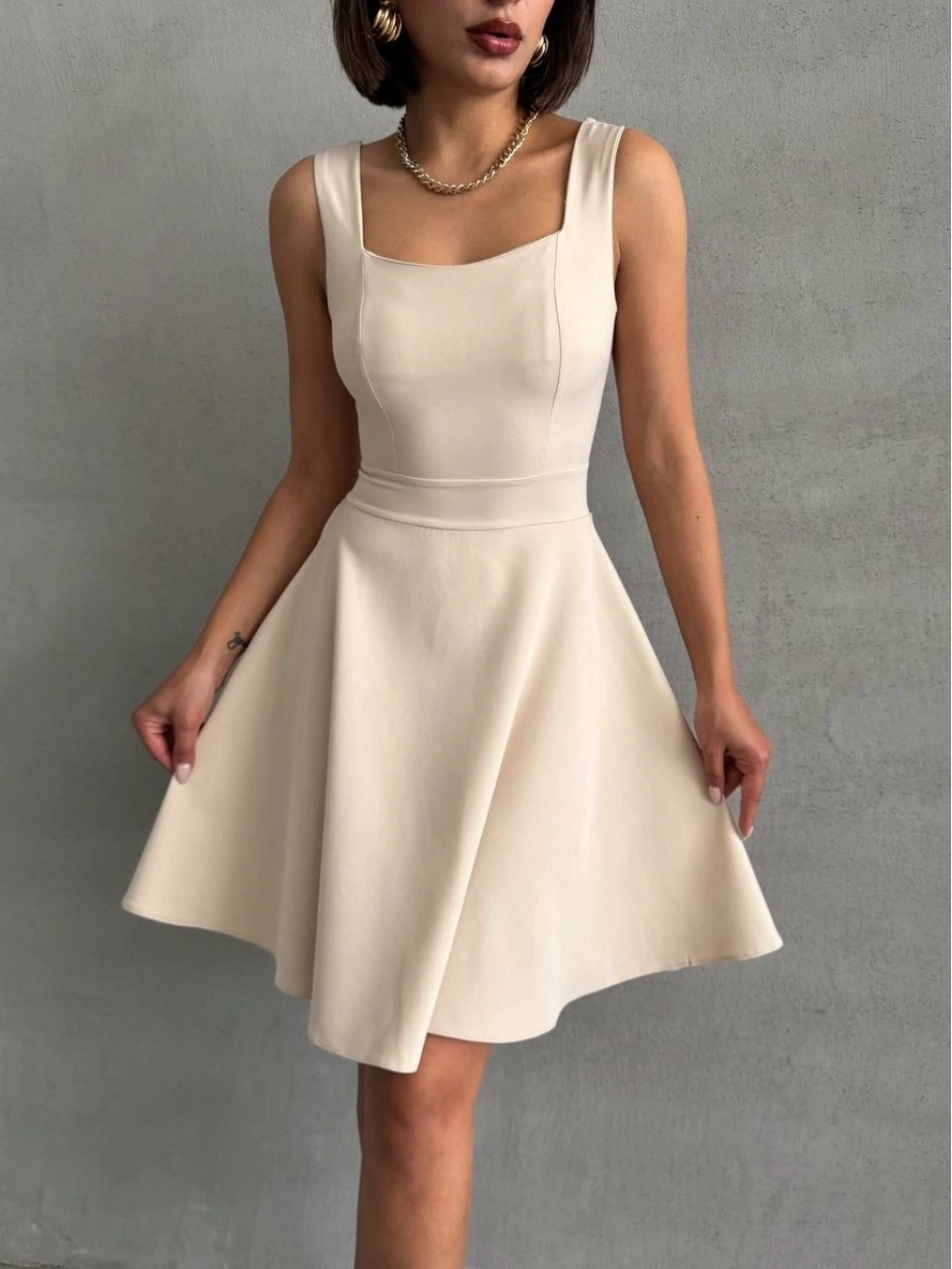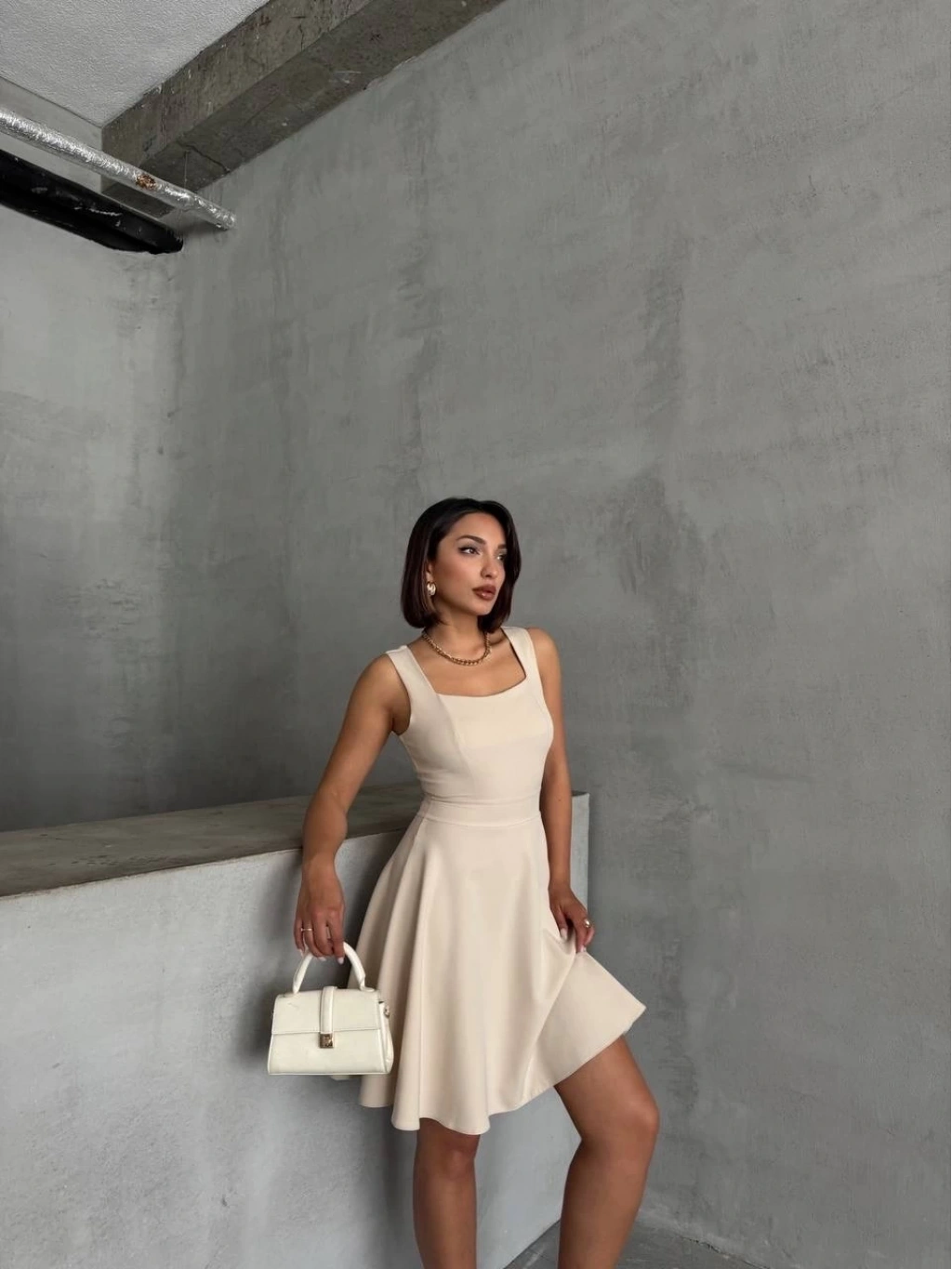 Şıklığı ve rahatlığı bir arada sunan Kadın Kare Yaka Kısa Elbise, gardırobunuzun vazgeçilmezi olmaya aday!