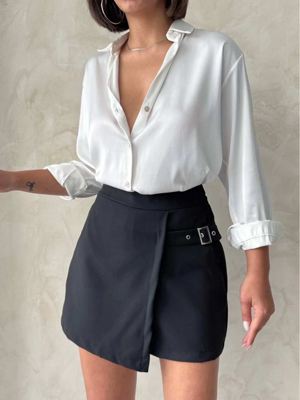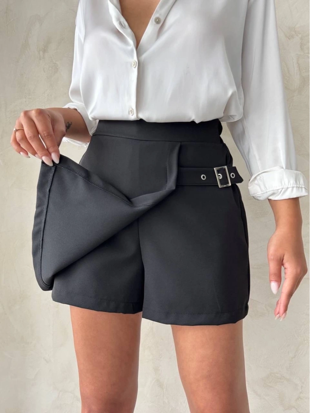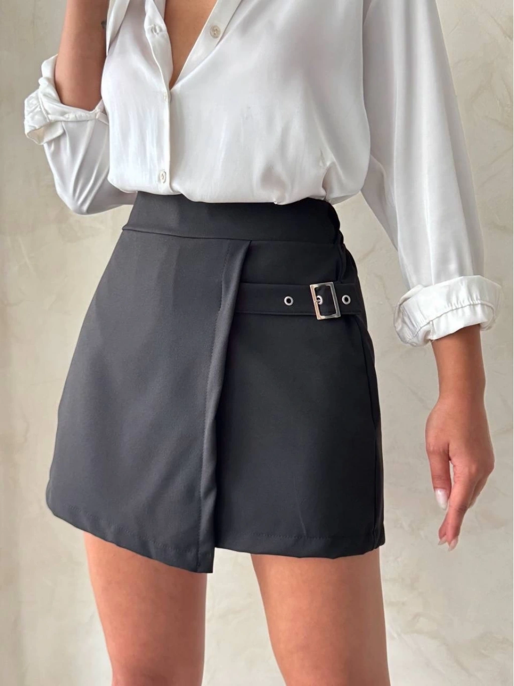 • Kadın tokalı şort etek siyah s25449