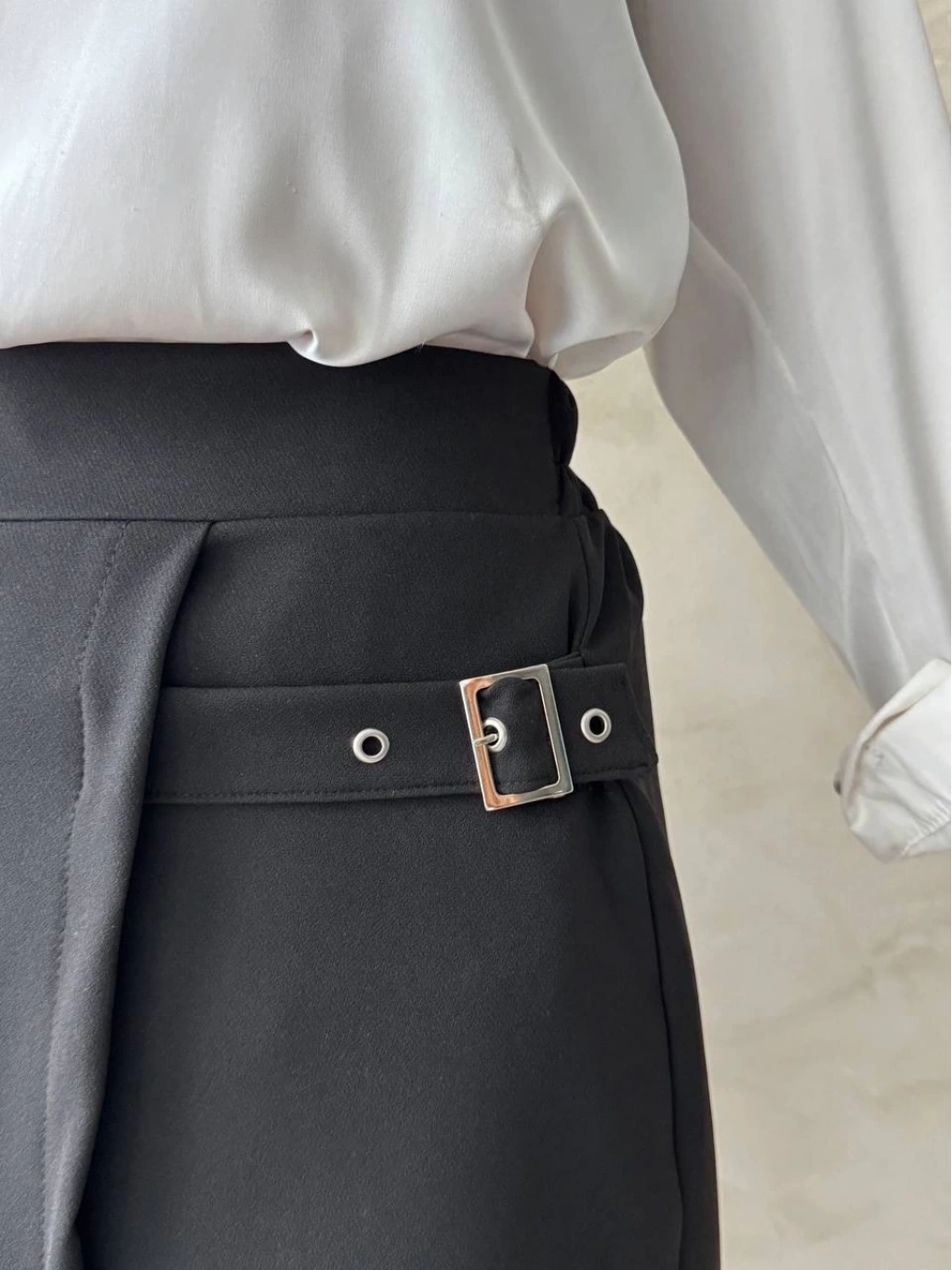 Kadın tokalı siyah şort etek, şıklık ve rahatlığı bir arada sunar. Markasız ürün, kaliteli kumaşı ve şık tasarımıyla öne çıkar.